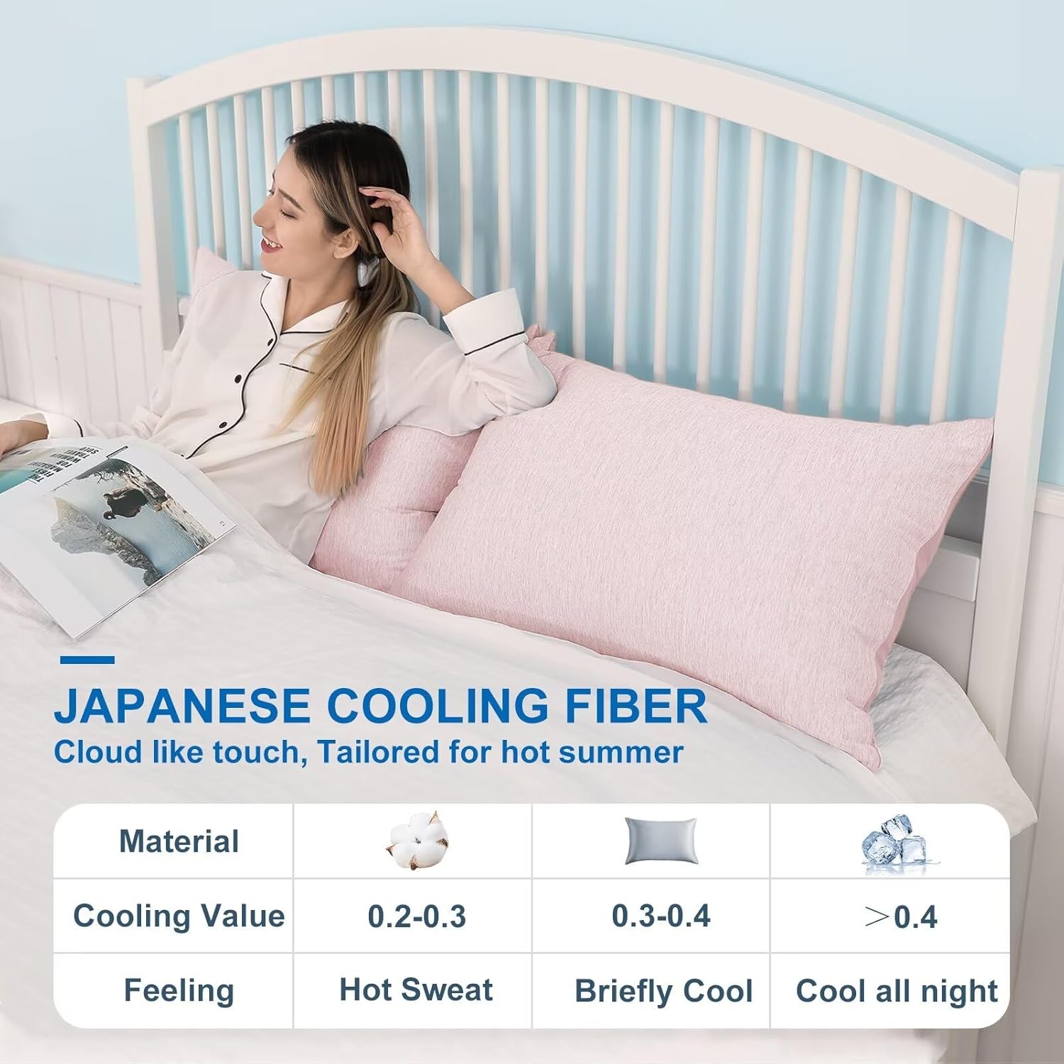 - COOLING TOUCH - HOMFINE cooling pillowcases are made of the latest Japanese Q-Max>0.4, far exceeding other fibers, specially designed for restless nights. This fibers material does a great job of absorbing your body heat and feel cool while touching. They will let you quietly in the irritable night Fall asleep, especially in the hot summer.
