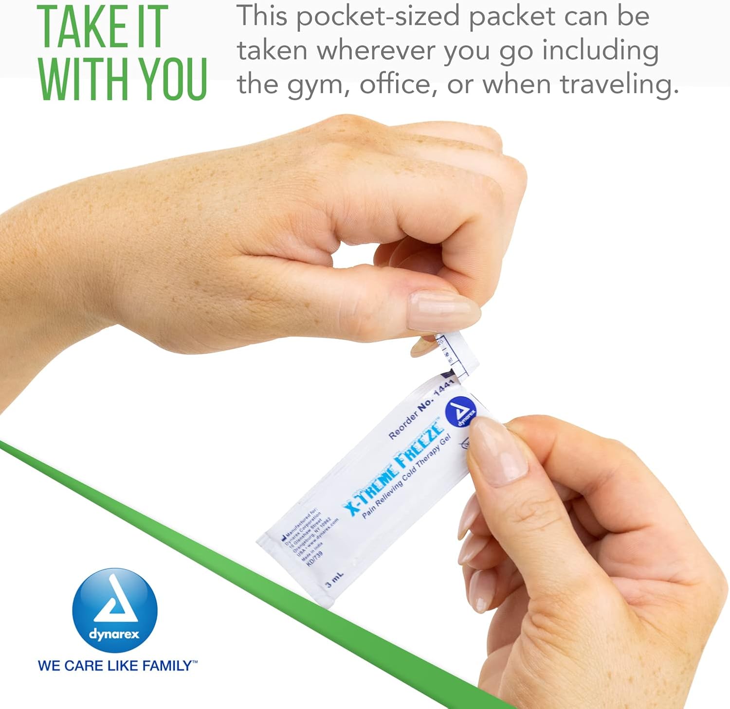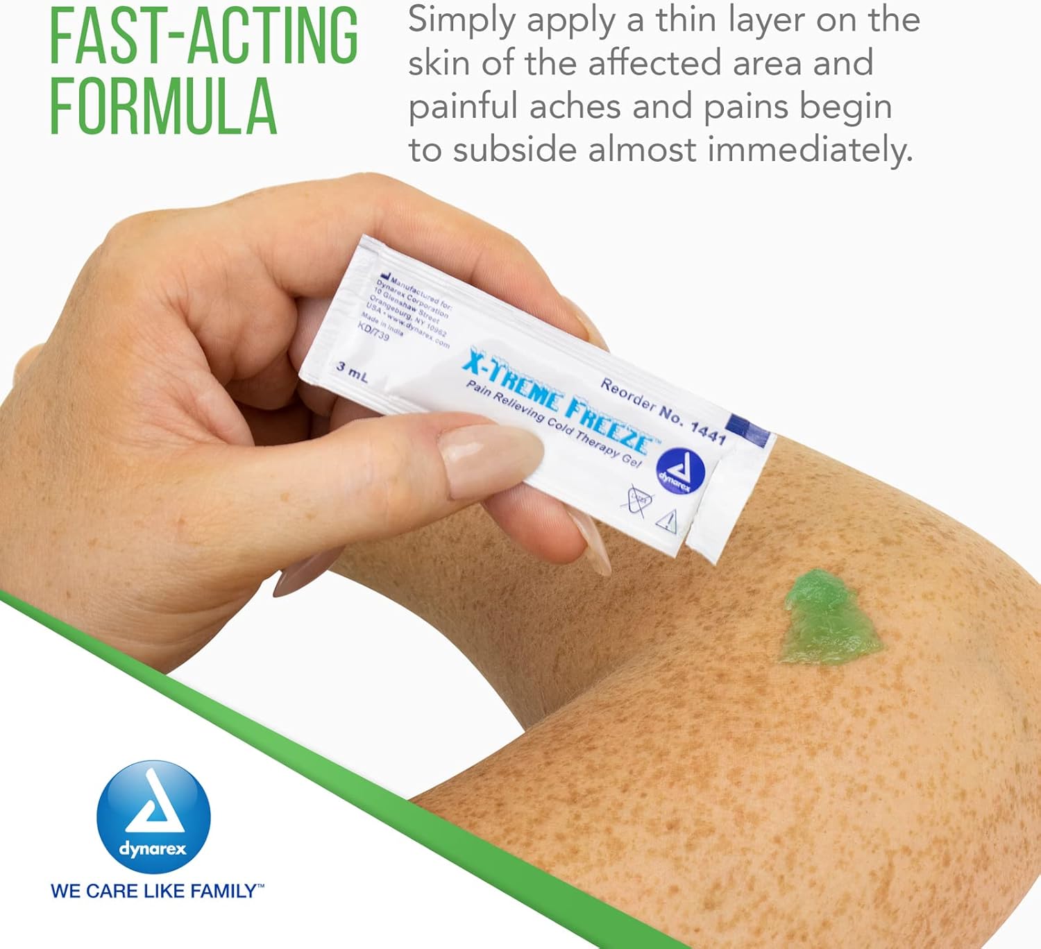 Dynarex X-Treme Freeze Relieving Cold Therapy Gel, Apply Directly to Skin, Green, Individual 3-ml Packet, 2 Boxes of 100 X-Treme Freeze Relieving Cold Therapy Gel 3-ml Packets