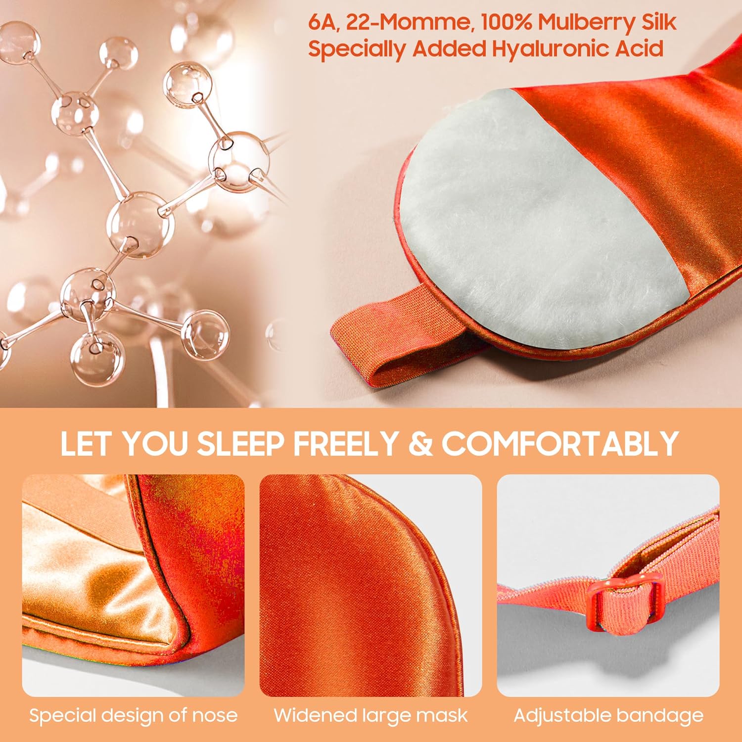 Sleep Mask 100% Mulberry Silk for Light Blocking, ZOESMIEN Eye Mask for Women Men Side Sleeper, Puffiness Dry Eyes Headache, Adjustable Strap, Christmas Gift Package, Vitality Orange