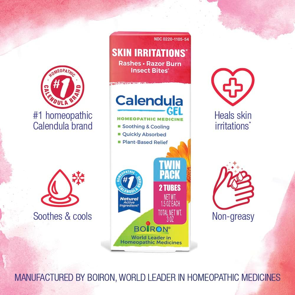- [PLANT-POWERED RELIEF OF SKIN IRRITATIONS, RASHES, RAZOR BURNS, INSECT BITES, INSECT STINGS] Powered by plant actives from the calendula flower, Boiron Calendula Gel helps promote healing of skin irritations such as rashes, razor burn and insect bites or stings; it is fragrant-free, non-greasy, and provides a cooling and soothing effect on the skin; from Boiron, the number one selling homeopathic calendula brand and world leader in homeopathic medicines