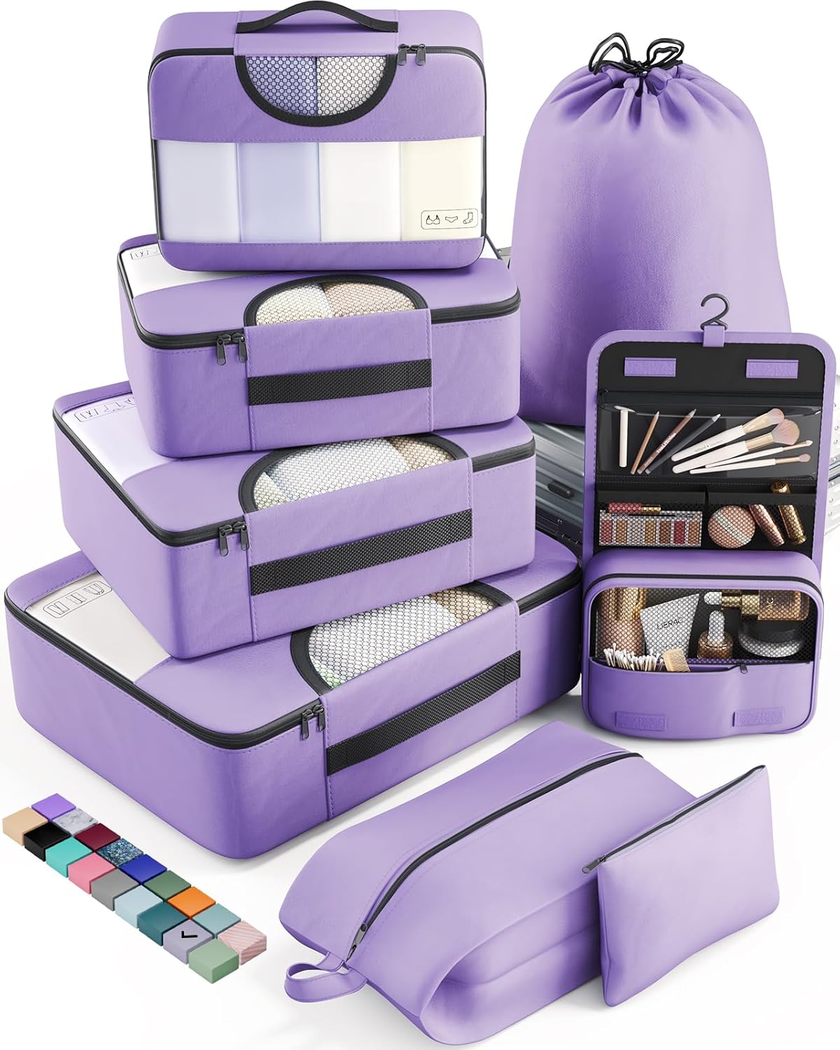 Veken 8 Set Packing Cubes for Travel Essentials, Suitcase Organizer Bags in 4 Sizes, Carry-On Luggage Accessories with Large Laundry & Hanging Toiletry Bag, Must-Have for Airplane, Road Trip & Camping