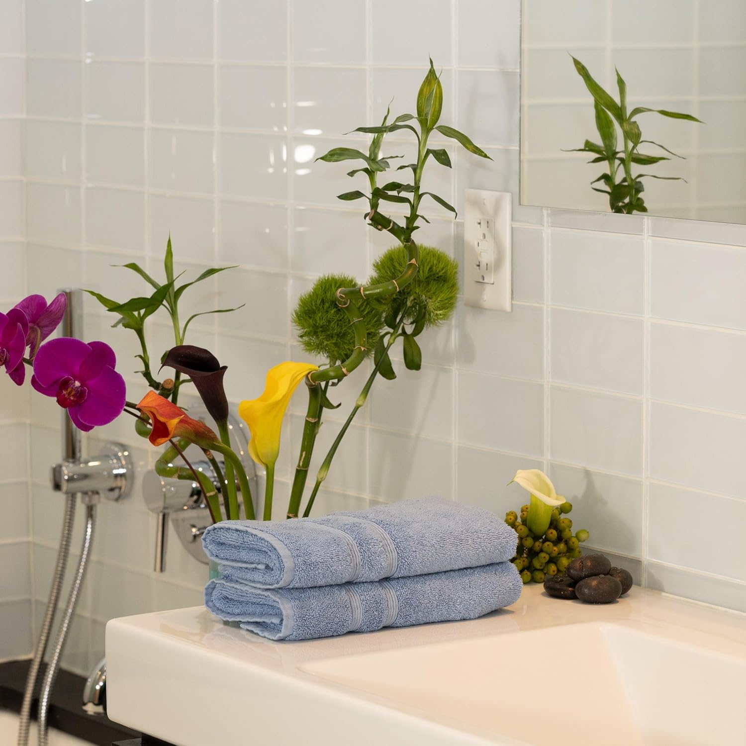 - 50% Viscose Made From Bamboo & 50% Aegean Turkish Combed Cotton, 700 GSM, Dobby Border, 2-ply Twisted Yarn – Carefully crafted with optimal weight and thickness to soak up water and comfort your skin. Double twisted yarns are spun out of extra-long fibers to ensure superior quality and performance. Buy individually or in Family Multi-Packs.