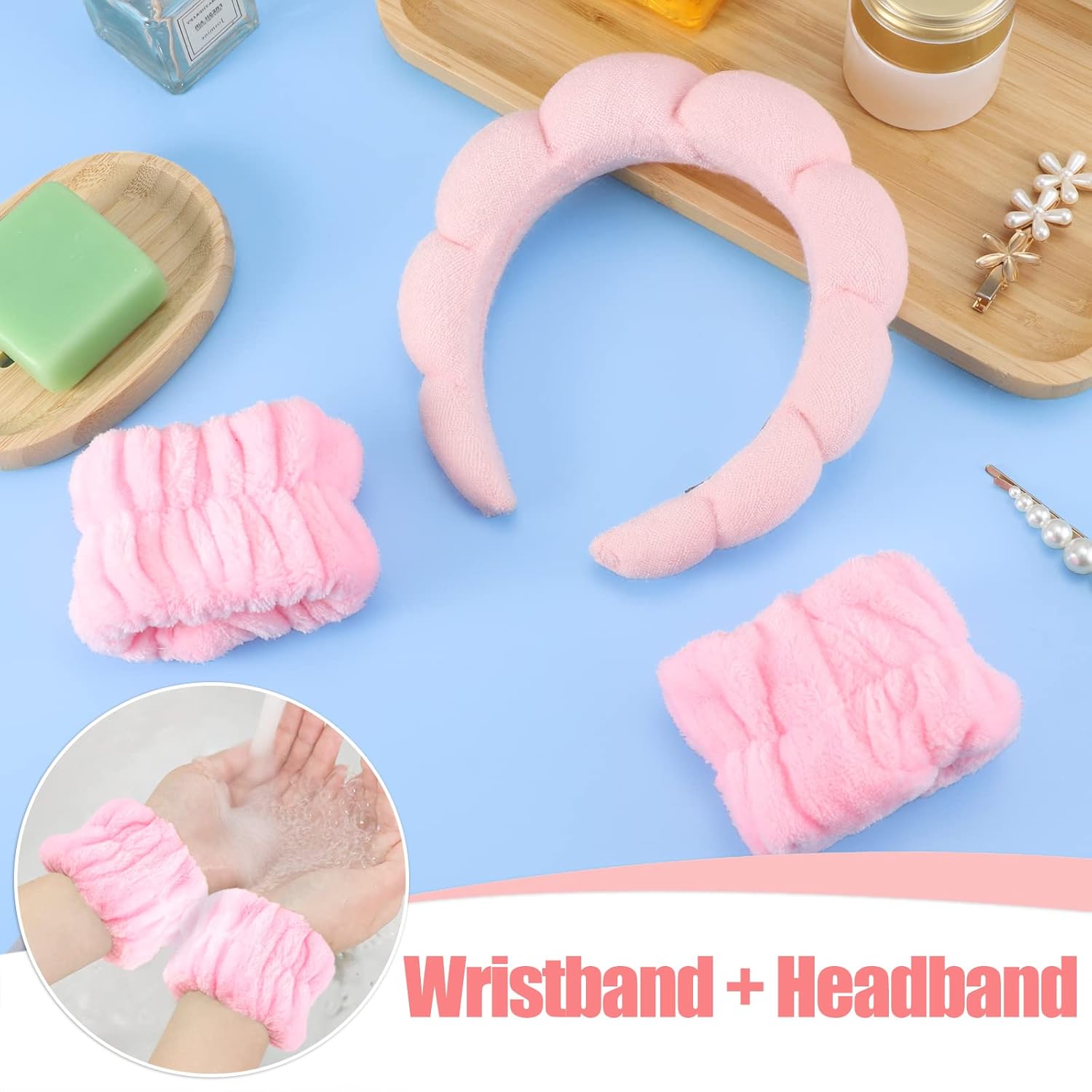 - Fit Size: Our pink headband size is 7.08 x 6.69inch, face wash wristbands size is 2.36x3.93inch, each face washing headband and wristbands is soft and flexible, fit most people wear them.