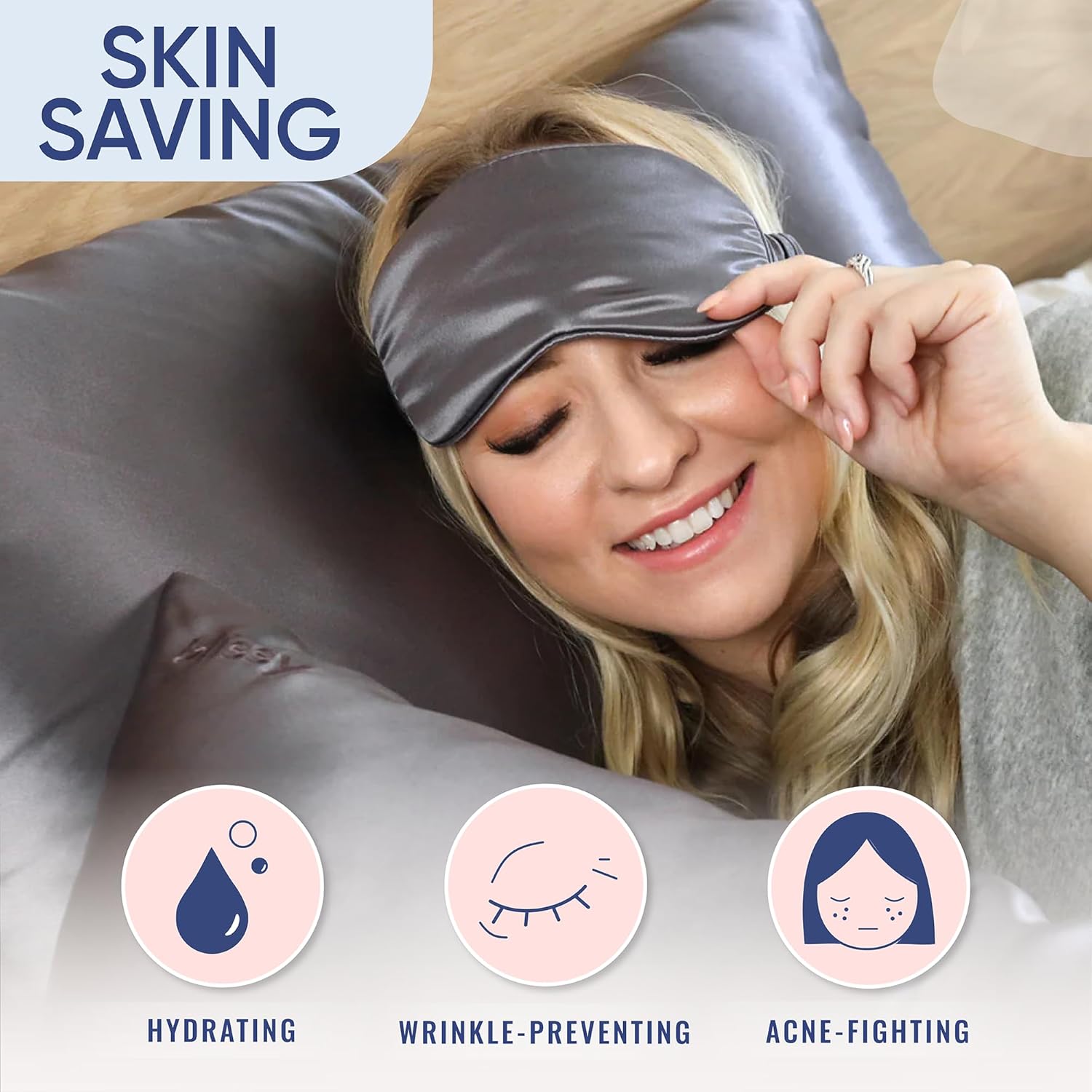 Blissy Silk Pillowcase - 100% Pure Mulberry Silk - 22 Momme 6A High-Grade Fibers - Silk Pillow Cover for Hair & Skin - Regular, Queen & King (Gray, Standard)