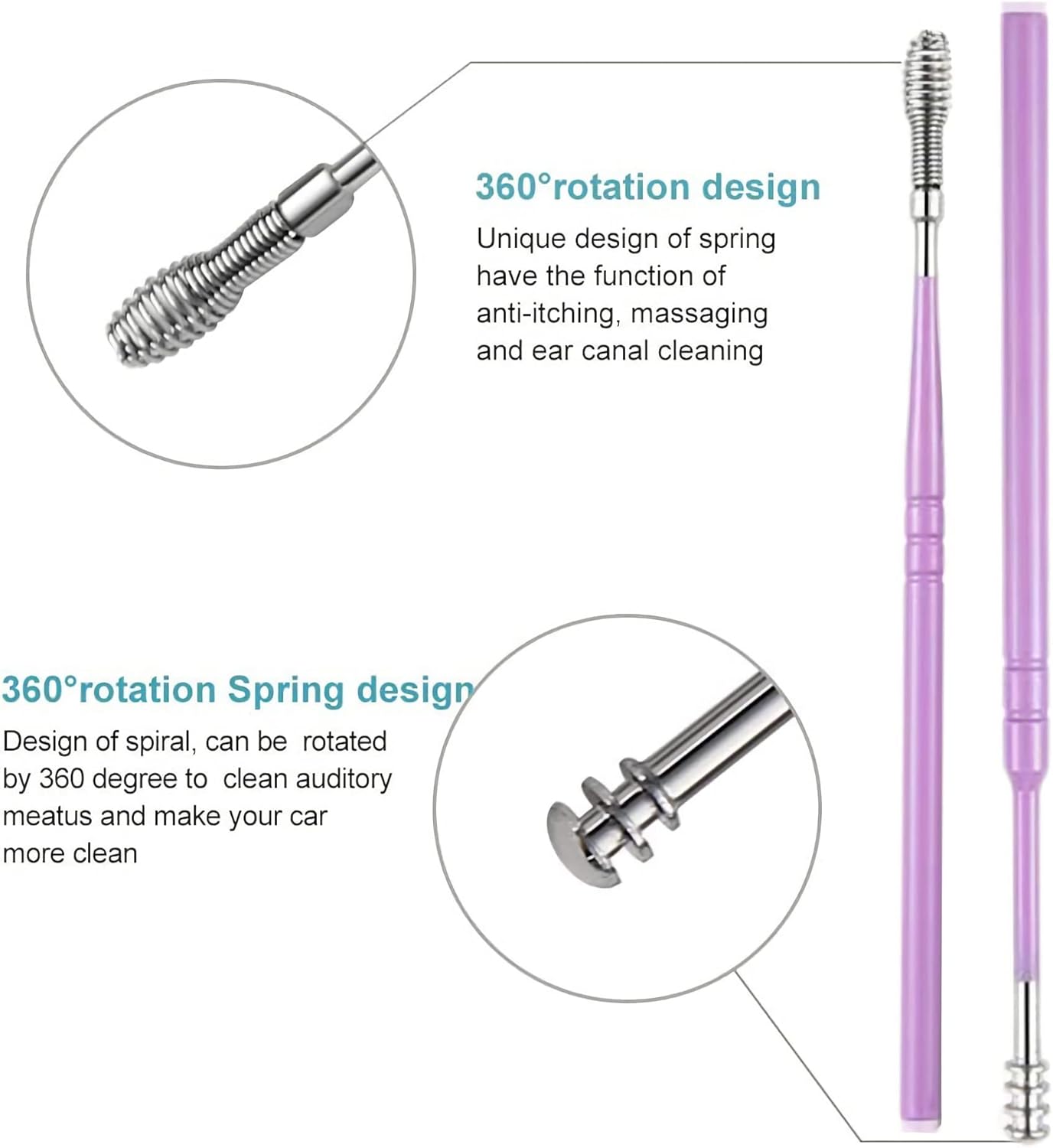 - ERGONOMIC DESIGN: Fully polished tools with smooth and rounded surface, all to prevent any irritation or scratching and make sure you can massage the ear canal and relieve itching while cleaning. The handles of the ear pick tools are designed for a non-slip grip.