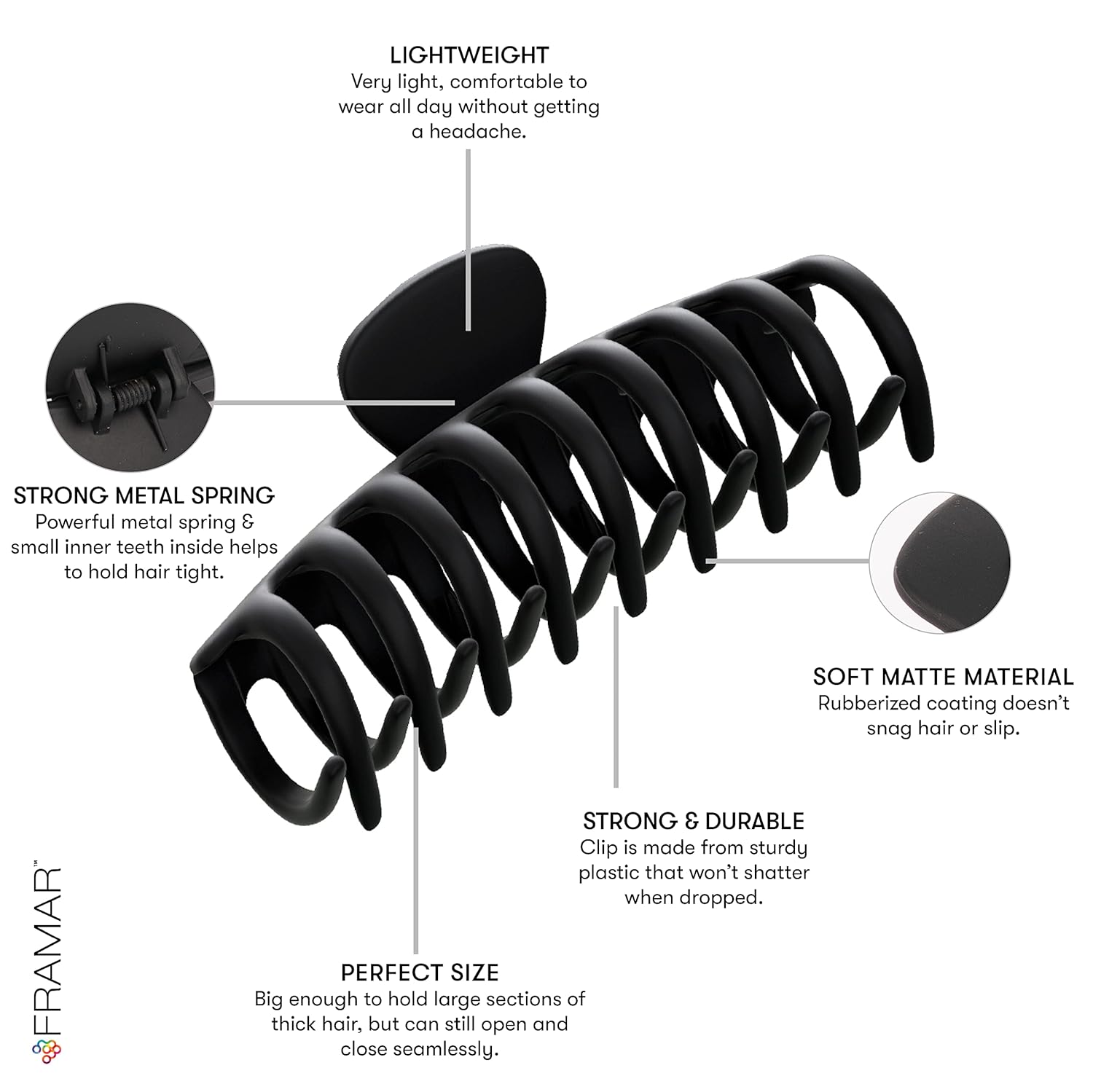 FRAMAR Large Claw Clips For Thick Hair – Large Hair Clip For Thick Hair, Big Hair Clips For Women, Hair Claws Clips For Women, Black Hair Clips, Black Claw Clip - 4 Pack Non Slip Matte Finish