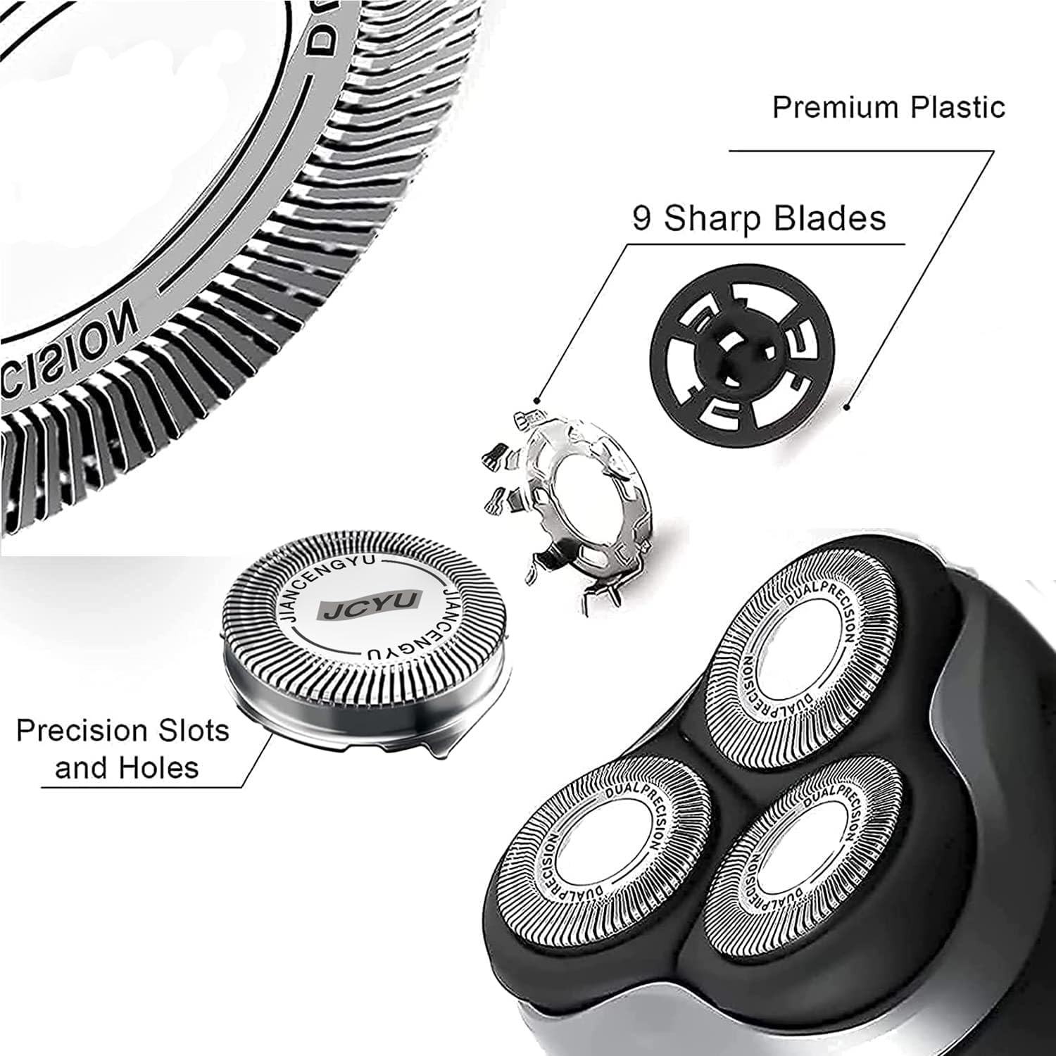 - [Easy Replacement & Installation]: Easy to take off and replace a new head- just two minutes. After installation, put a drop of oil on each nozzle and run for 10 seconds to get the best experience. It's recommended that you replace the shaving head every 12 months to get the max shave performance.
