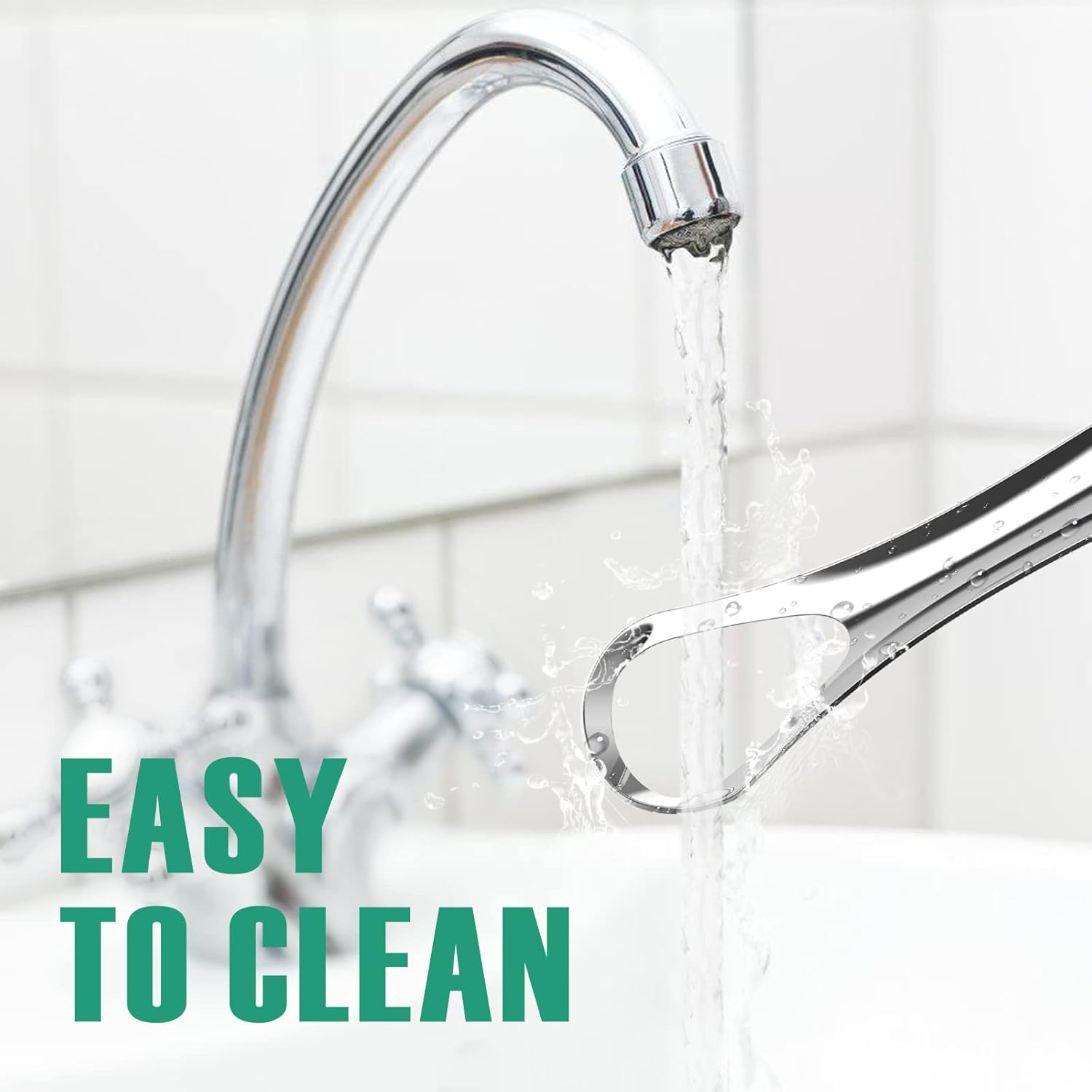 - EASY TO CLEAN: After each use, rinse the stainless steel tongue scraper thoroughly with clean water. After cleaning, place the tongue cleaner in a ventilated and dry place to dry naturally. Note: Although stainless steel is corrosion-resistant, long-term immersion in water may accelerate surface oxidation or affect the material stability of the handle. Therefore, it is not recommended to immerse the tongue scraper in water for a long time.