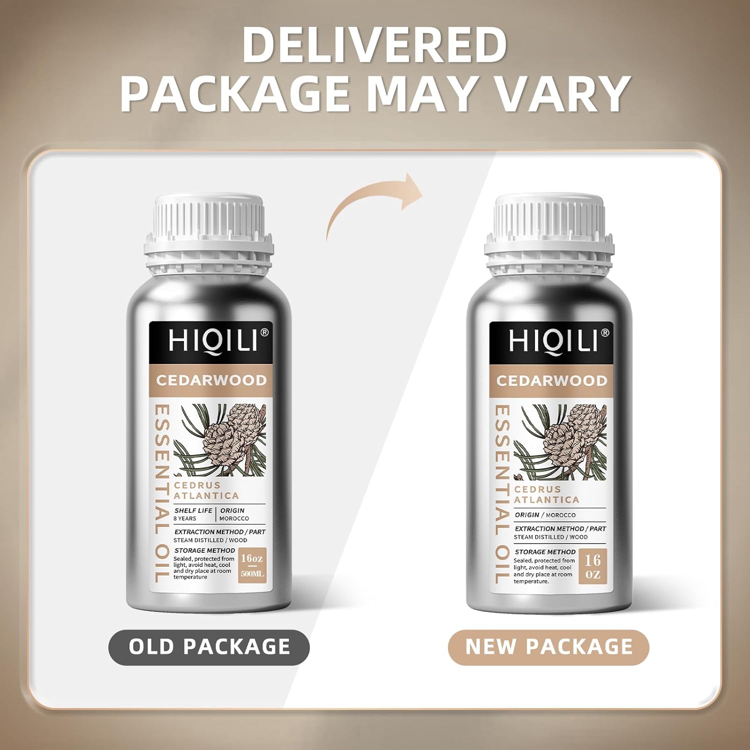 HIQILI 16 Fl Oz Cedarwood Essential Oil, Pure Natural Cedarwood Oil for Hair, Diffuser, Aromatherapy - 500ML