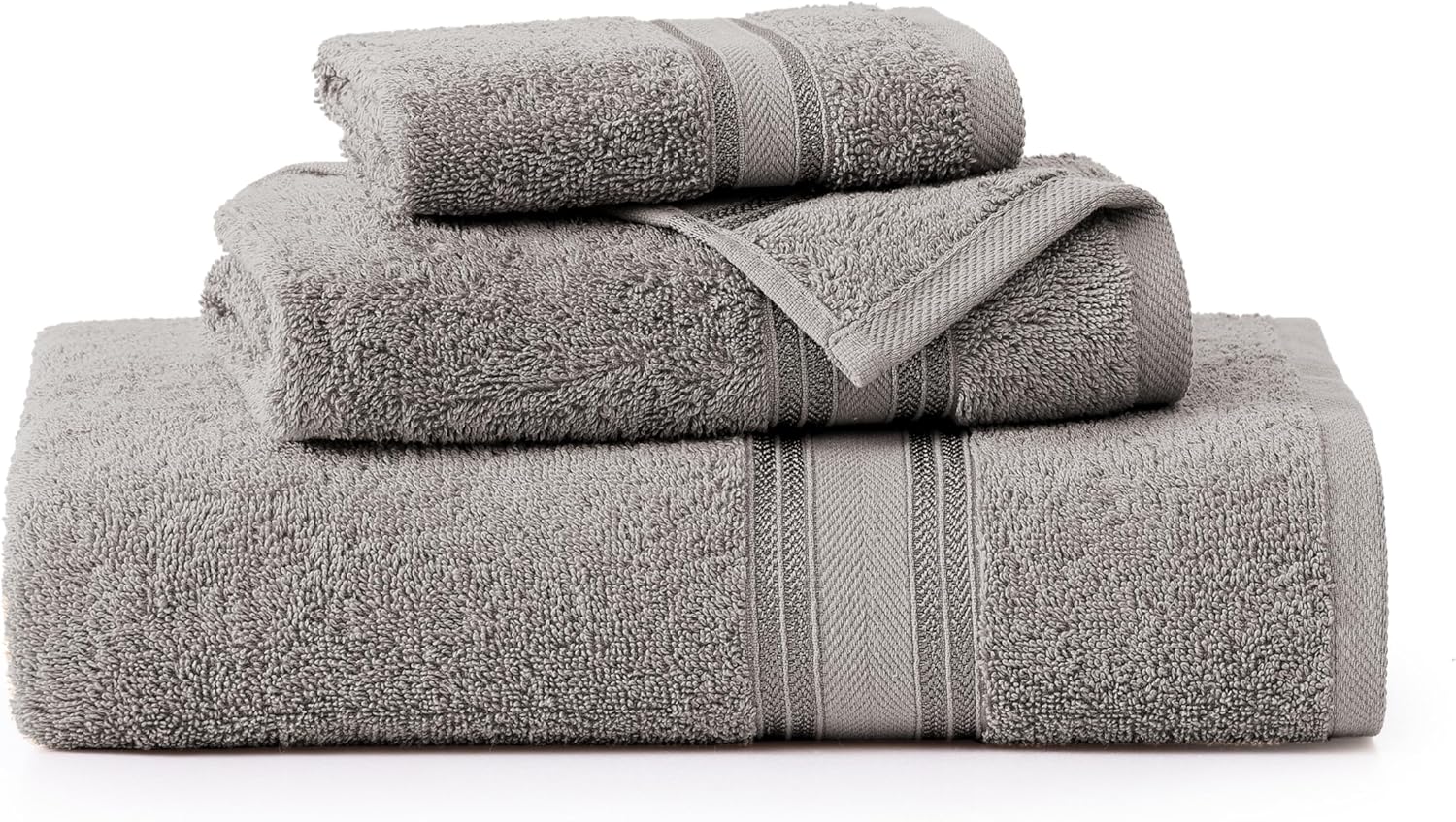 LANE LINEN Luxury Bath Towels Set - 3 Piece 100% Cotton Bathroom Towels, Quick Dry, Extra Aborbent, Super Soft Towels Set 1 Hand Towel, 1 Wash Cloths, 1 Bath Towel, Space Grey