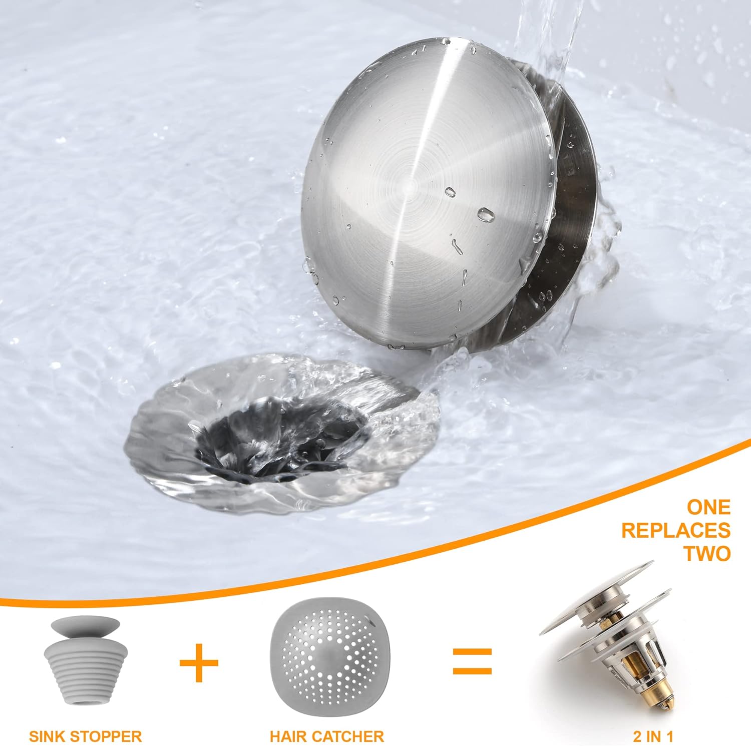 - Upgraded Pop Up Drain Stopper: This full-size sink drain filter is made of high quality stainless steel; Quickly seal and drain water with a single press; No worry of rust, cracking, corrosion or leakage; Large cover design, simple and easy to match