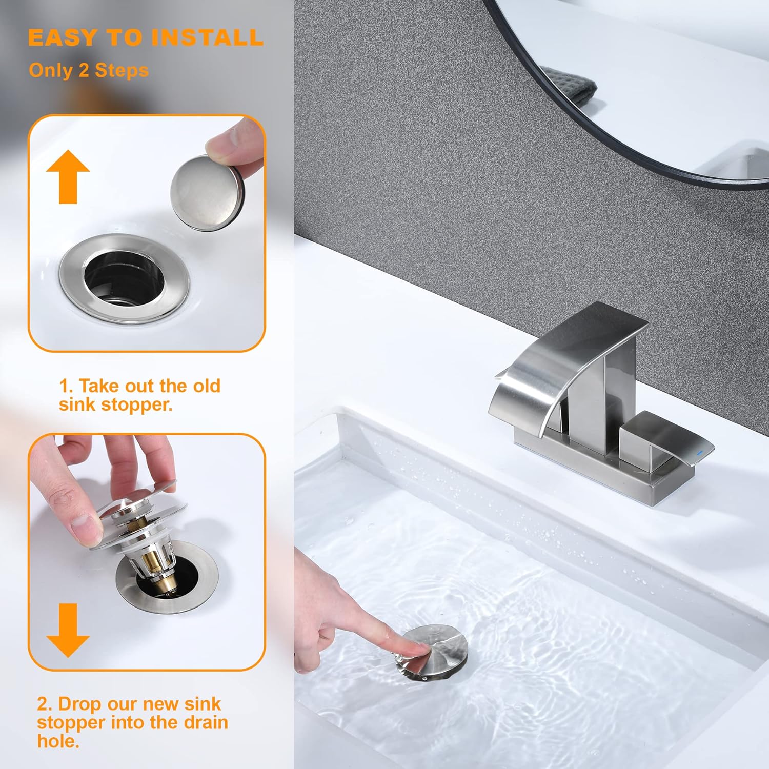 - Easy to Use: The pop up sink stopper replacement for bathroom sink with good rebound strength, you only need to easily press the cover of the sink stopper to switch between the sealed and drained states