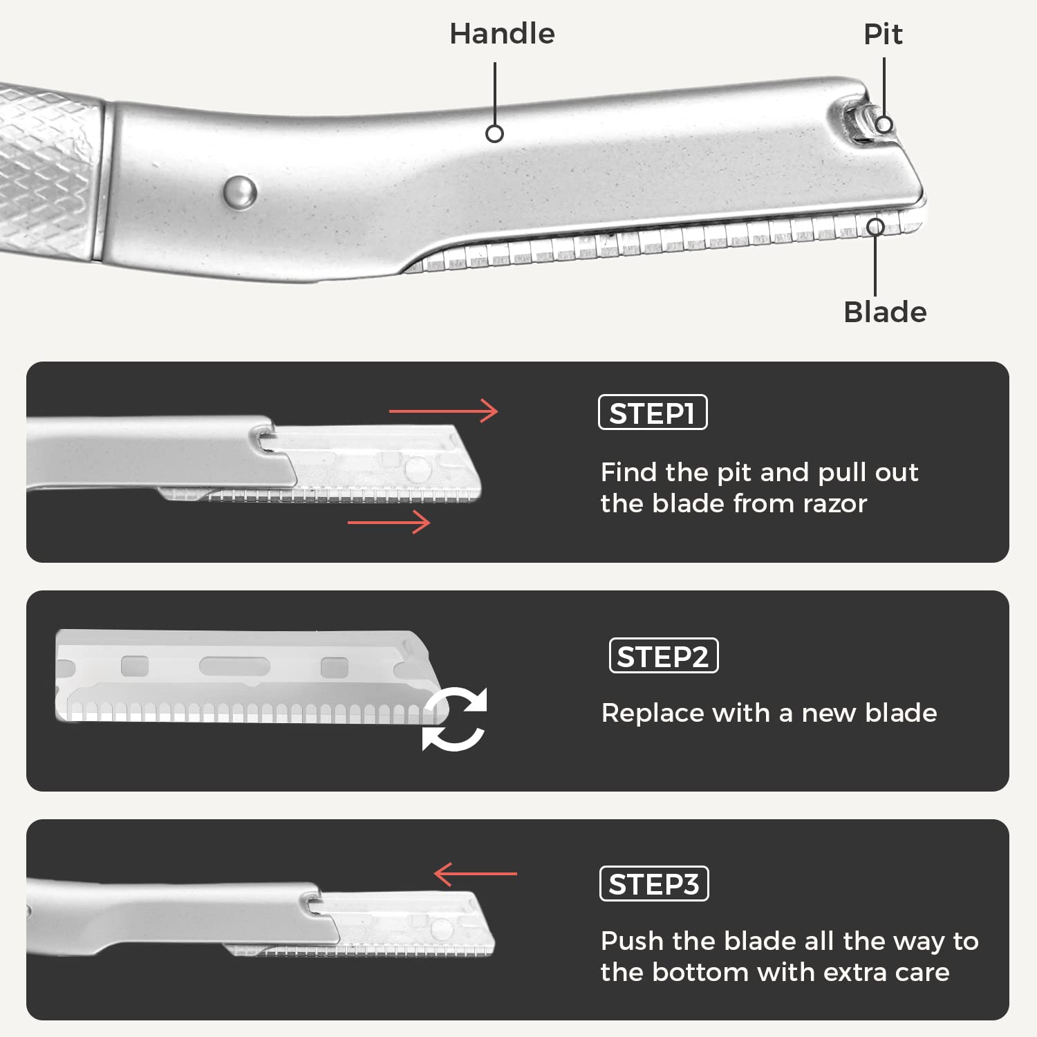- PREMIUM MATERIAL: Stainless steel replaceable blades are perfect for accurate shaving. Long lasting and strong material allows you to use it for facial hair, eyebrow shaving, or hair on other parts of the body.