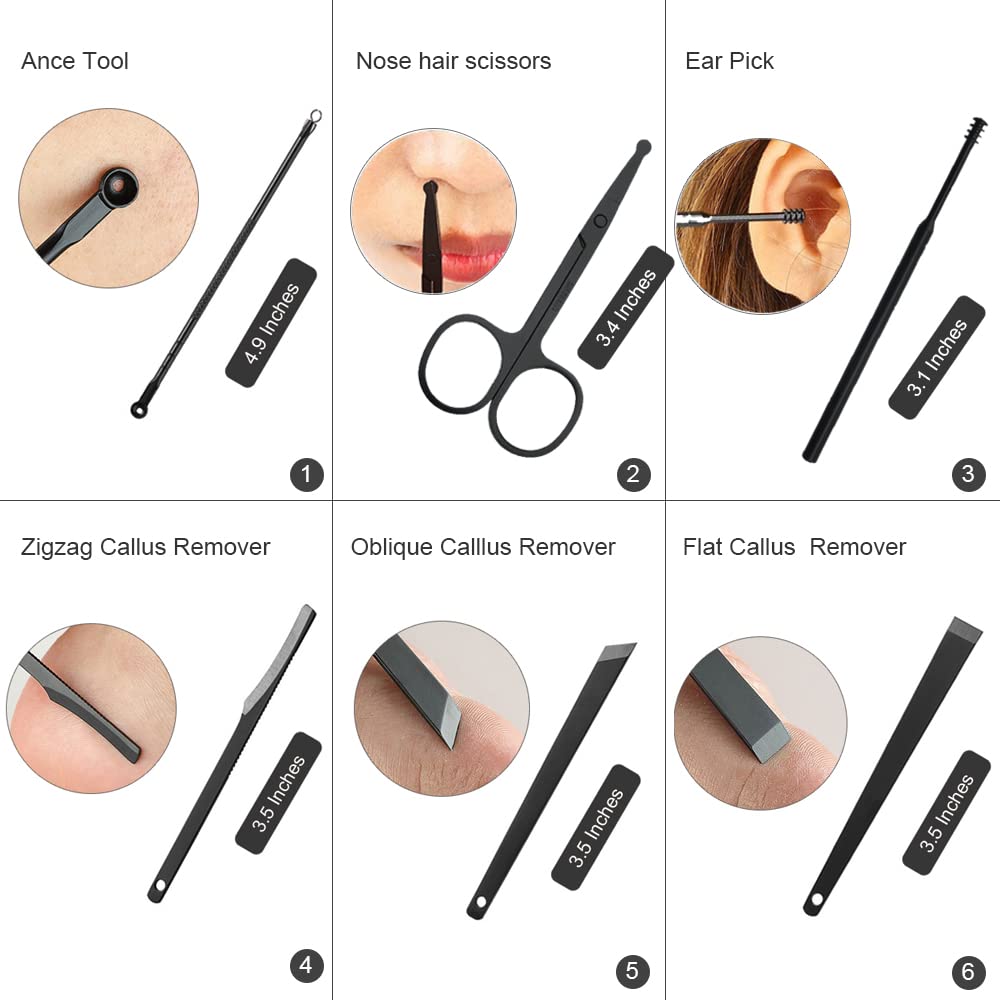 - Multipurpose: 18 PCS professional manicure pedicure Grooming set, including hand care, facial care , and foot care. This manicure pedicure set almost has every thing you need in daily life.