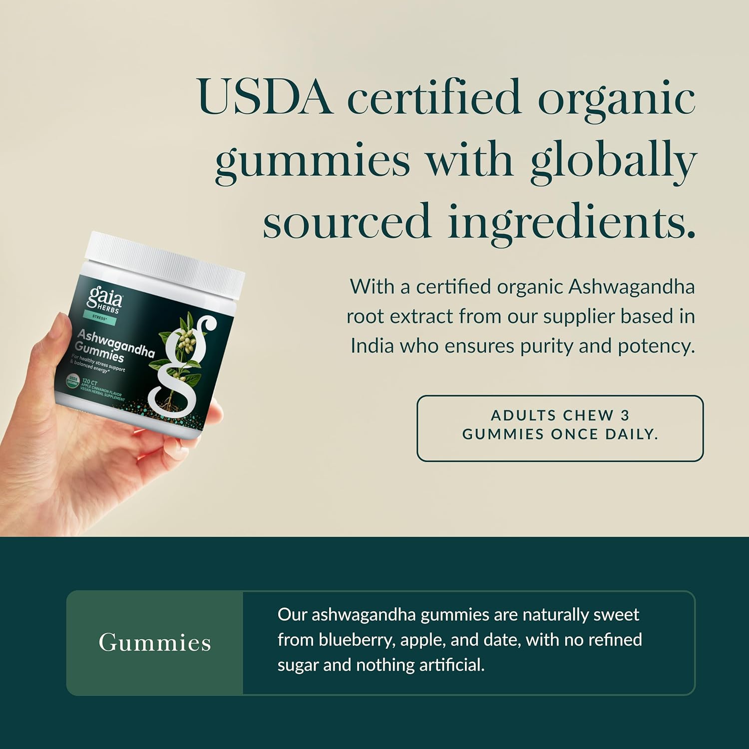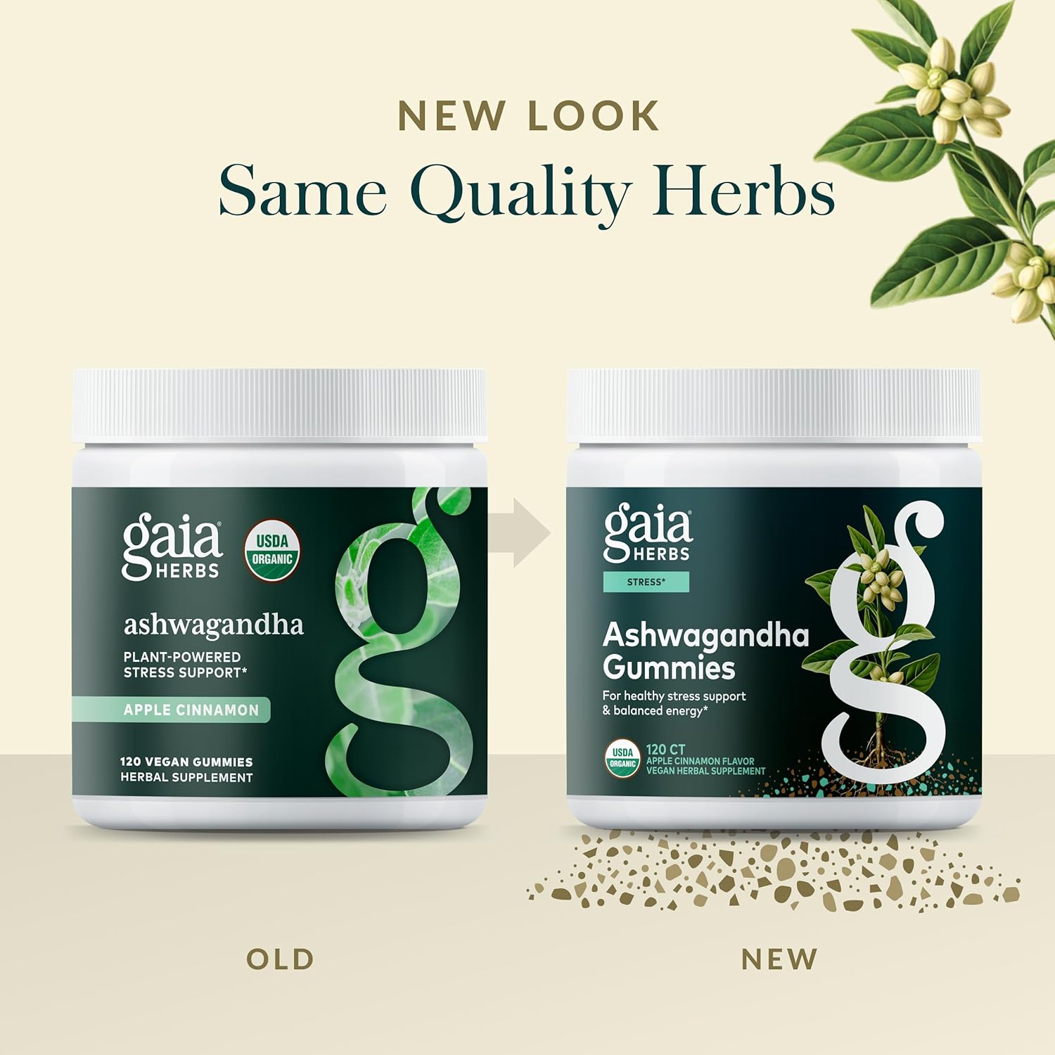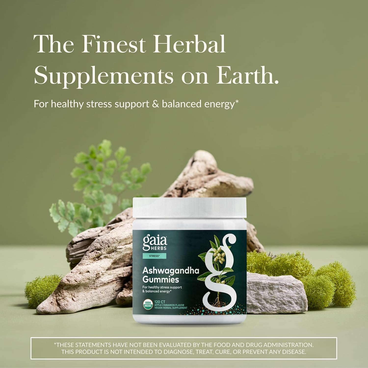 Gaia Herbs Organic Ashwagandha Gummies, Stress Support, Cinnamon, Ginger, Gluten Free, Vegan, 120 Count