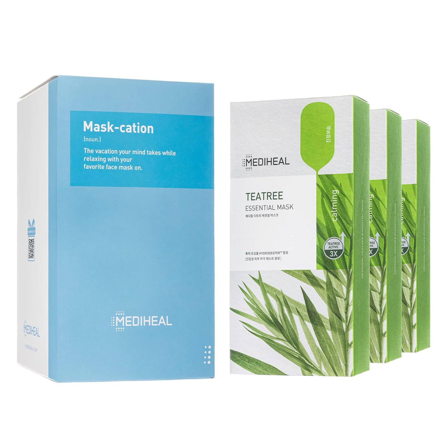 Mediheal Official [Korea's No 1 Sheet Mask] - Tea Tree Essential Blemish Control Mask JUMBO Pack | 30 Masks, 3 x 10 Packs Skin Soothing & Sebum Control Sensitive Oily Korean skin care set