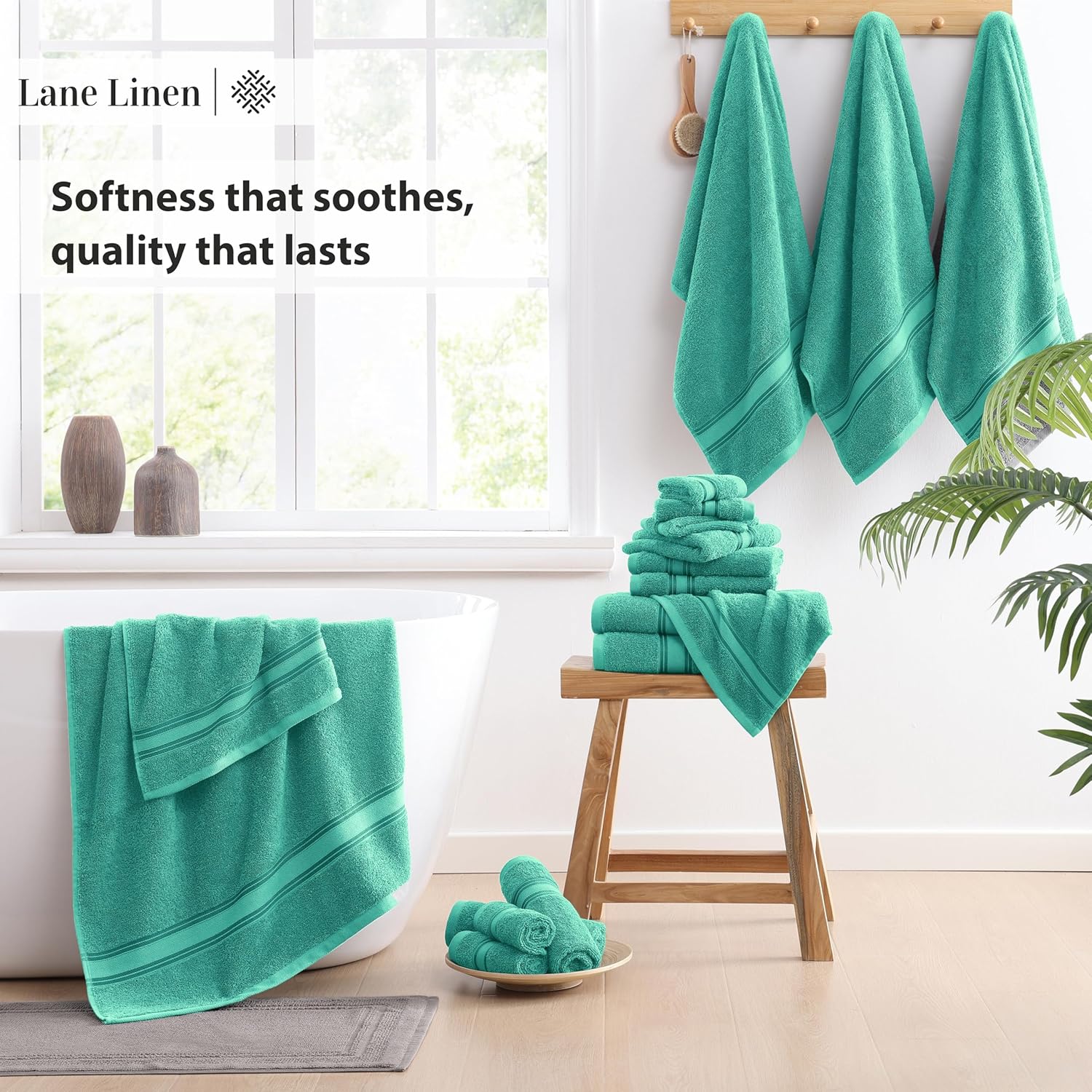 LANE LINEN 100% Mercerized Cotton Luxury Bathroom Towel Set - 18 Pcs - Zero Twist, Fluffy, Soft & Highly Absorbent - 6 Bath, 6 Washcloths, 6 Hand Towels - Avaialable in Wide Variety of Colours - Teal
