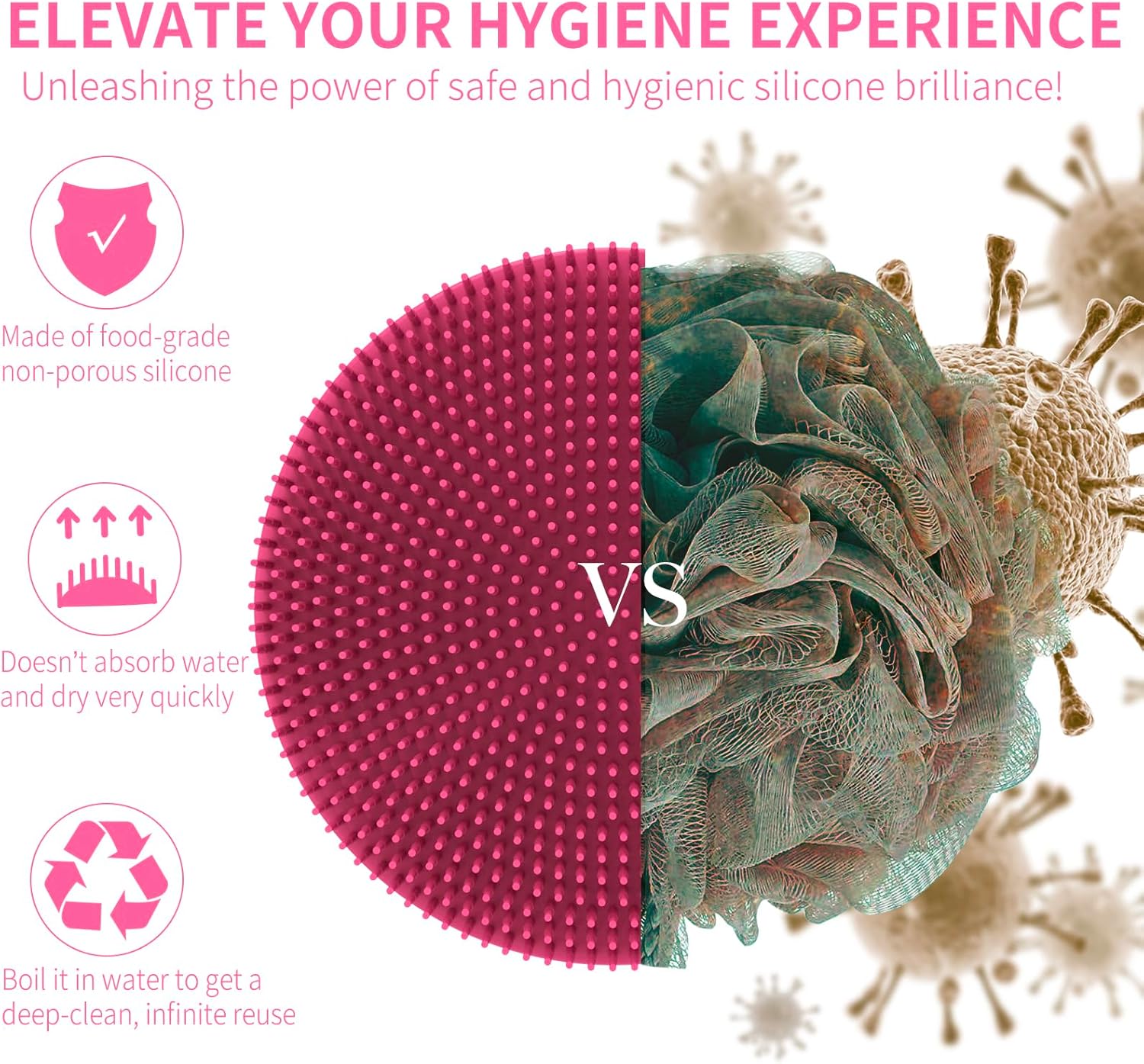 - MORE HYGIENIC OPTION: Unlike loofah, wash cloth and exfoliating sponge, BEAUTAIL body scrubber is made from non-porous, self-cleaning silicone, which doesn't absorb water, dries quickly, so it isn’t as susceptible to building up with unpleasant substances.