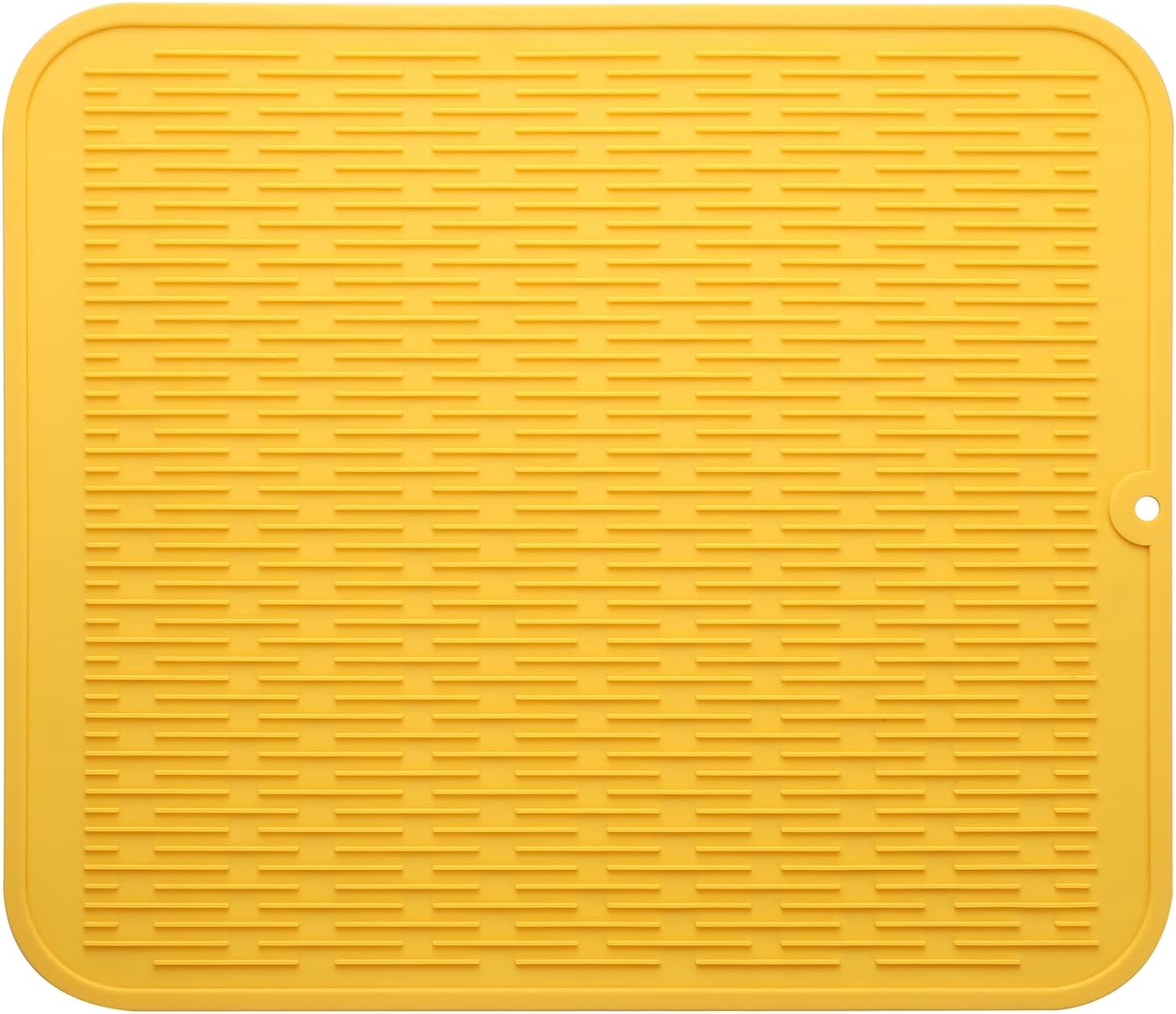 Silicone Dish Drying Mat for Multiple Usage,Easy clean,Eco-friendly,Heat-resistant Silicone Mat for Kitchen Counter or Sink,Refrigerator or Drawer Liner Yellow 2XL 24 inches x 18 inches