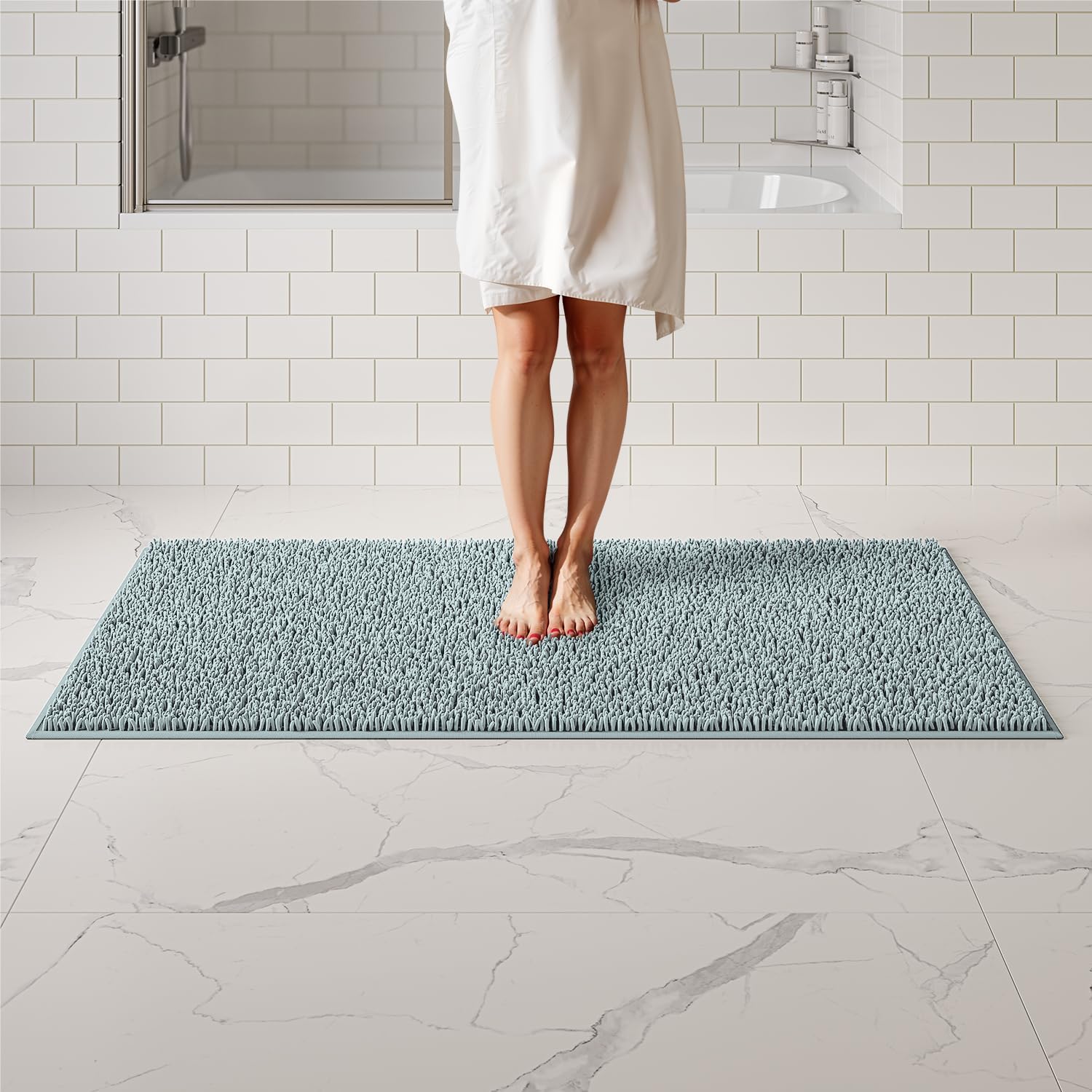 Chenille Bath Mats, Plush Absorbent Bath Mats Quick Dry, Soft & Machine Washable, Non Slip Carpet For Bathroom, Thick Bathroom Rugs, Shower Restroom Rug Mat, Alfombras De Baño, Bathrugs Matts, 61"x31"