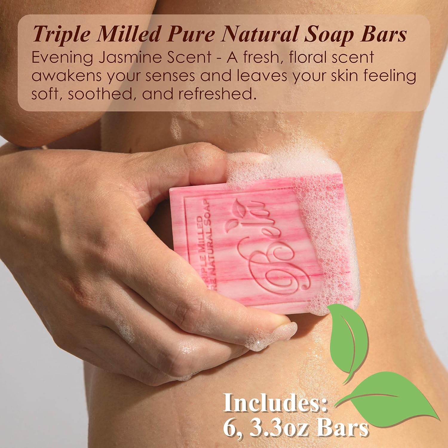 BELA Evening Jasmine Soap 3.3 OZ Pack of 6, Long Lasting French Triple Milled Bar Soap with Organic Shea Butter, Hand, Face and Body Wash Bar, Made in Australia