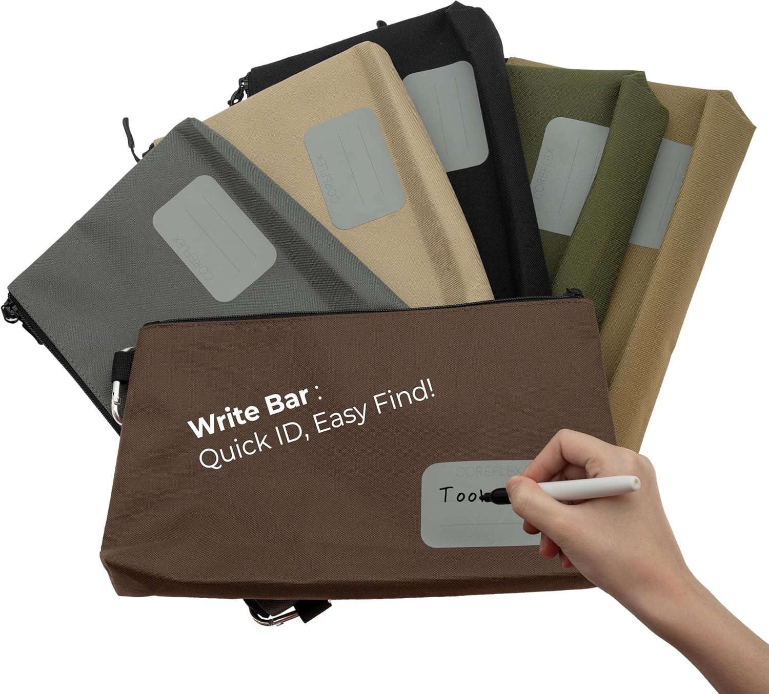 COREFLEX Premium Tool Pouch Zipper Bag, Small Tool Bag, Multipurpose Storage pouch, Heavy duty Flat Bottom Tool bag with YKK Zipper (6 pack Large 12inch)
