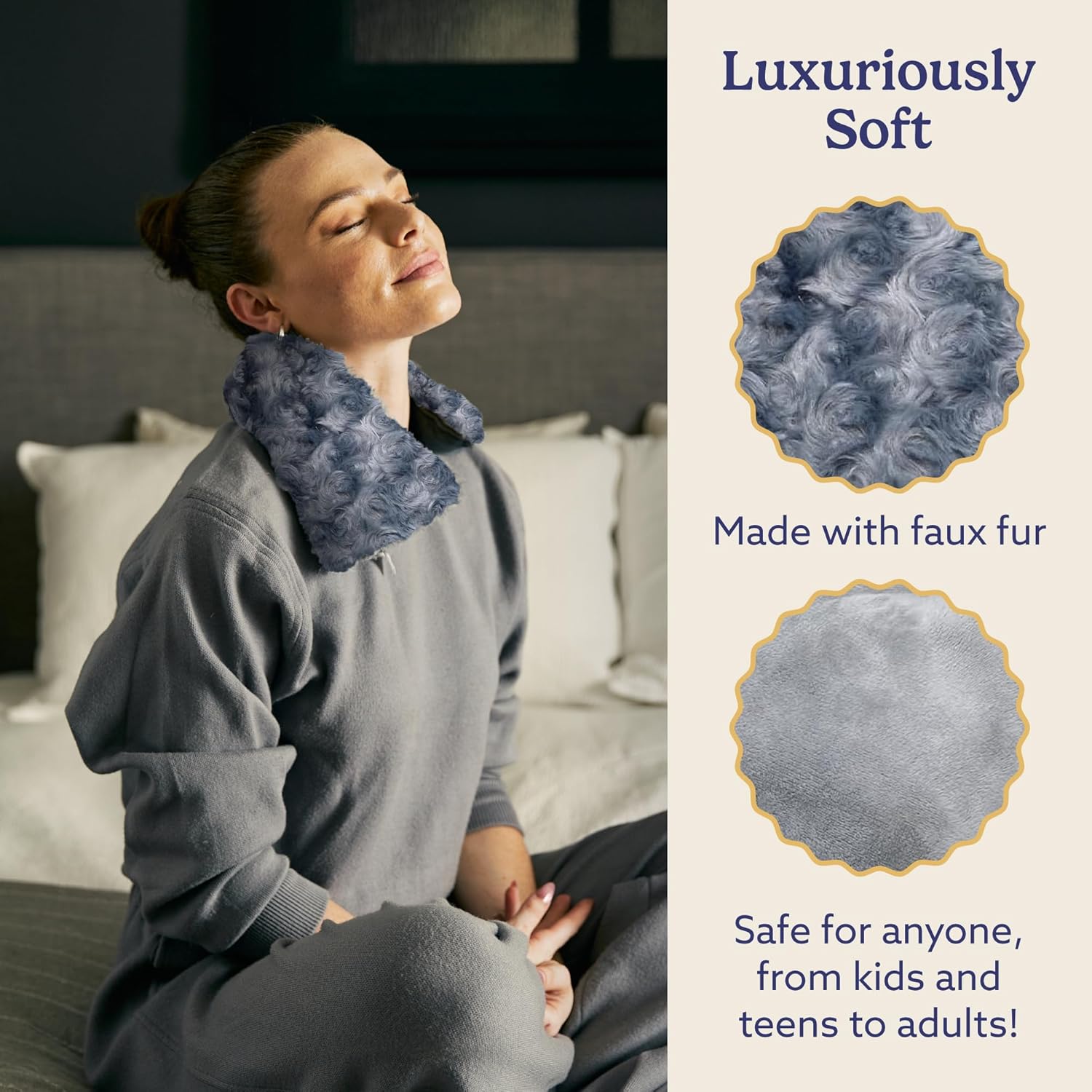 warmies Microwavable Neck & Shoulder Wrap - Heating & Cooling Plush Pad for Calming Relaxation - Weighted & Heated Neck Warmer with Scented Lavender - Microwave Heat Pad for Aches & Pain - Curly Gray