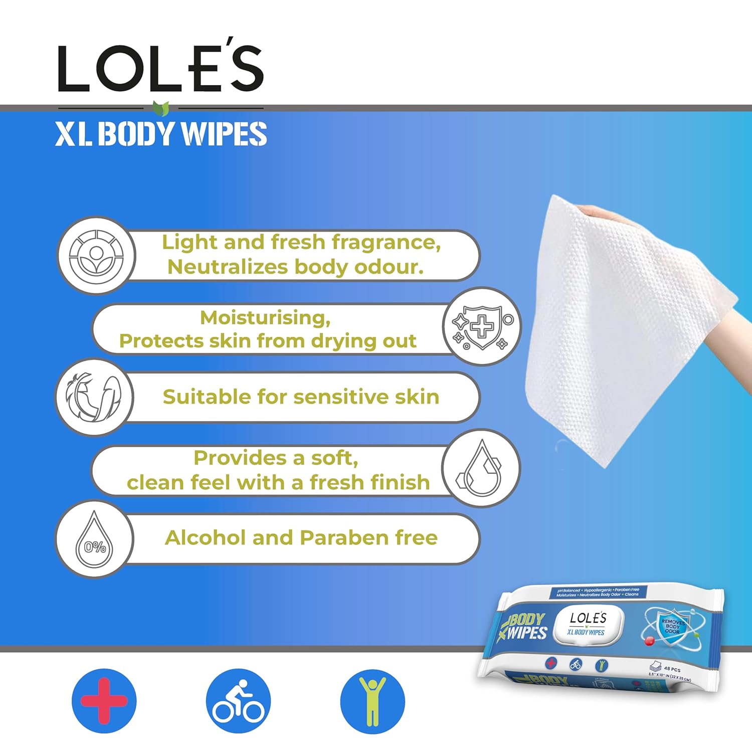 LOLE'S Body Wipes for Adults Bathing No Rinse XL – Bath Wipe for Adult, 48 Count Extra Large, – Shower Wipes – Body Wipe for Camping, Travel, Gym, Elderly Care, Women & Men – Fresh & Moisturizing