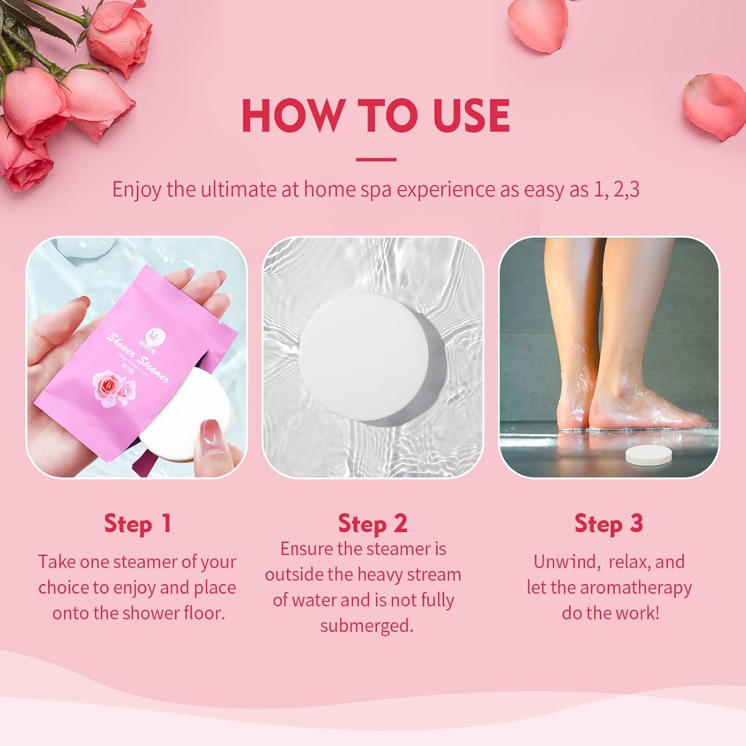 - 【Aromatherapy On A New Level】We have studied many of the shower tablets available on the market and improved them, MIRYE shower steamers naturally fragrant, it allows you to take a slow, deep breath and enjoy every moment of relaxation. Try this home spa kit now.