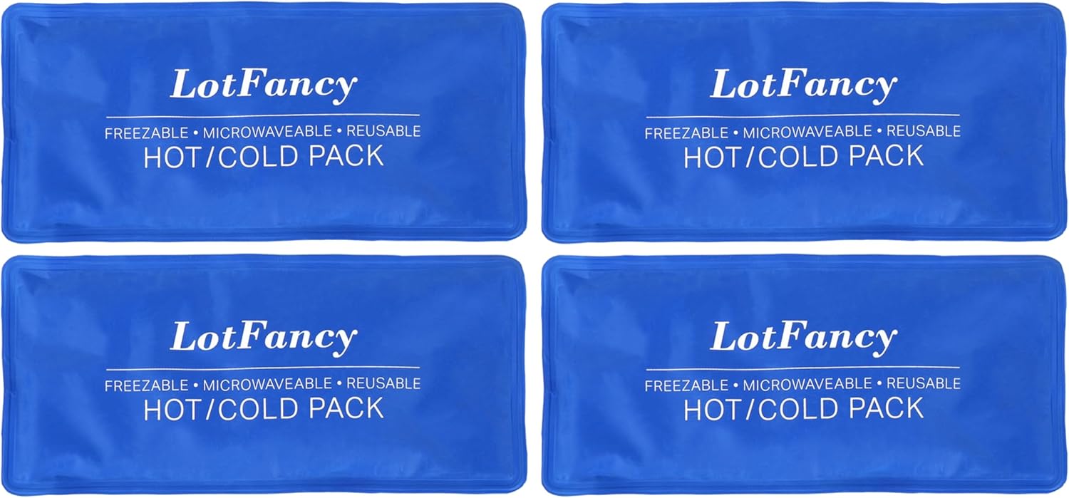 LotFancy Ice Pack for Injuries, 4 Reusable Hot Cold Packs for Therapy, Cooling or Heating Gel Pad for First Aid, Back, Shoulder, Neck, Head, Feet Pain Relief, 10.5 x 5 Inches