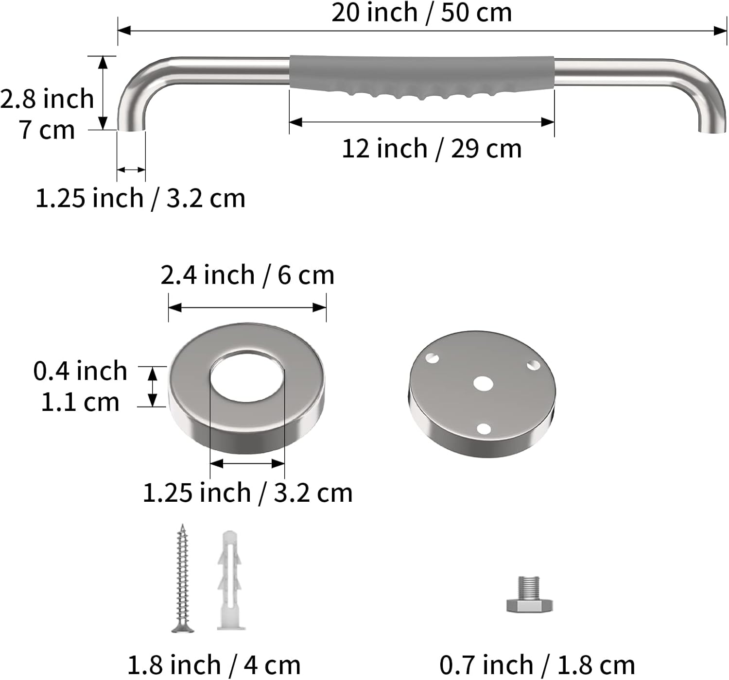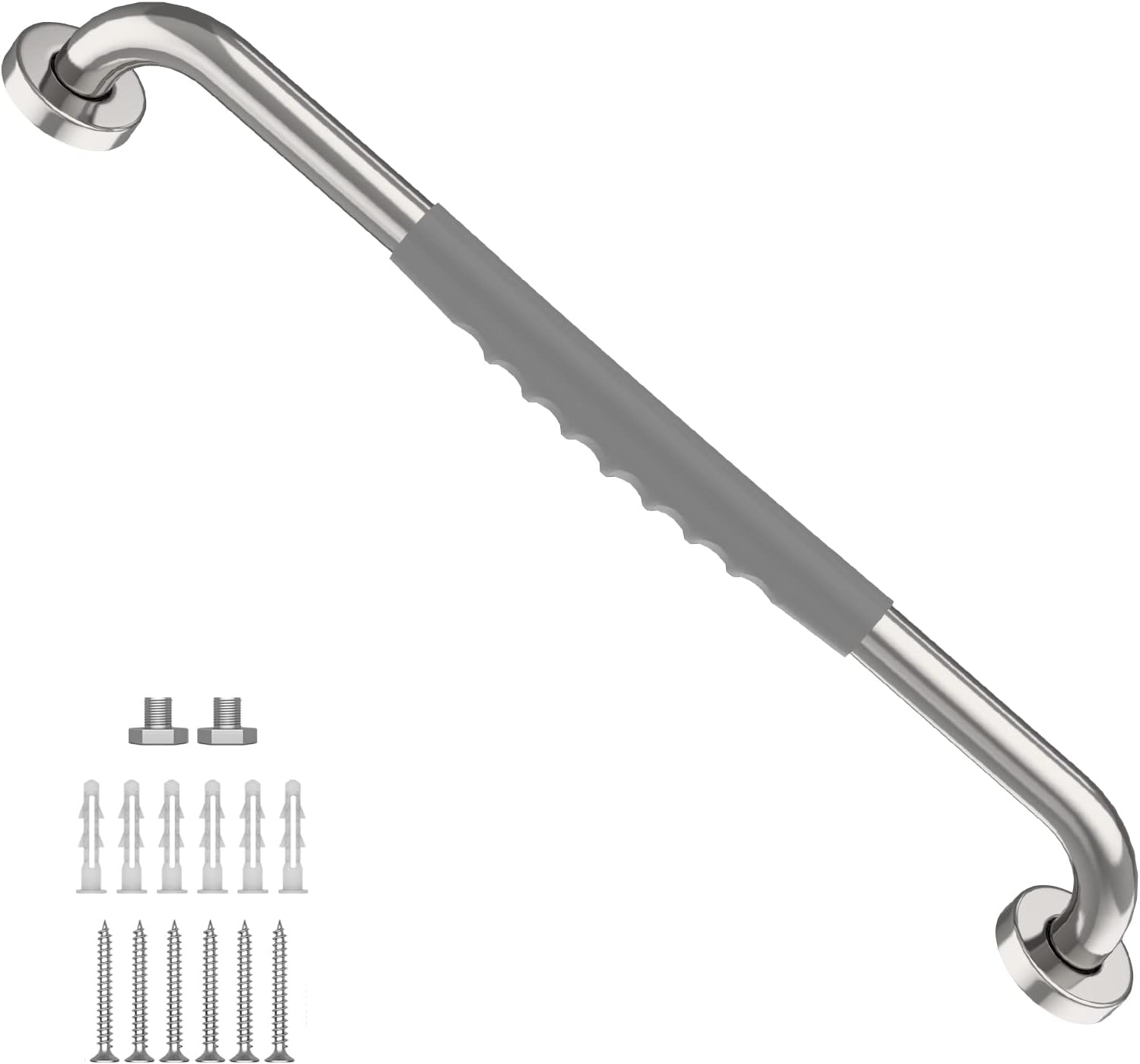 - Munzong's 20-inch Chrome Finish Concealed Screw-In SUS304 Stainless Steel Shower Grab Bar comes with an anti-slip soft gray rubber surface design for enhanced safety and stability. With only 2 screws required per side, our 3-hole flange offers installation flexibility to suit your unique mounting needs.