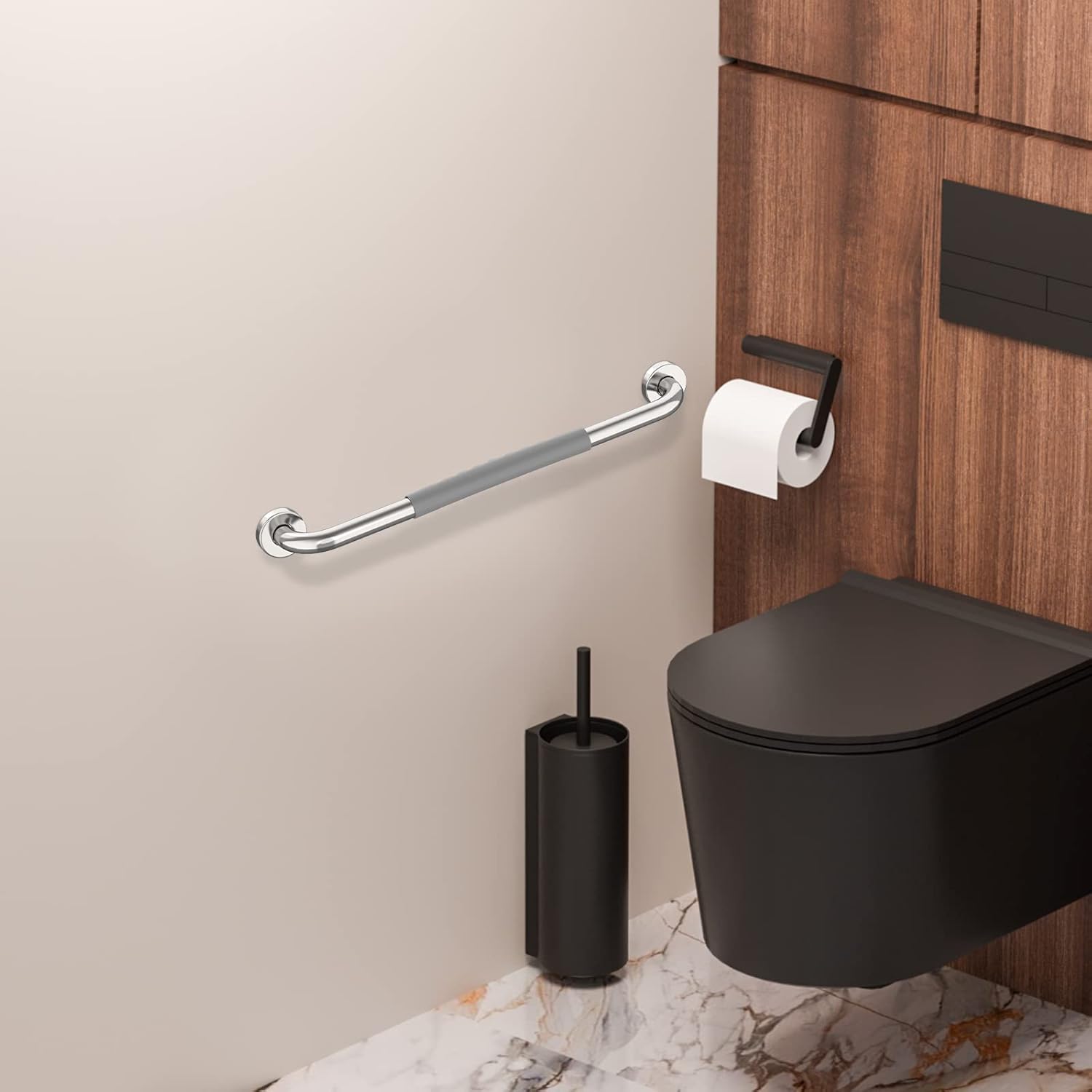 - Featuring a concealed screw-in secure wall mount design. The grab bar allows for easy and secure installation at any angle, covering unsightly screw holes for a clean, sleek appearance in your bath and shower.