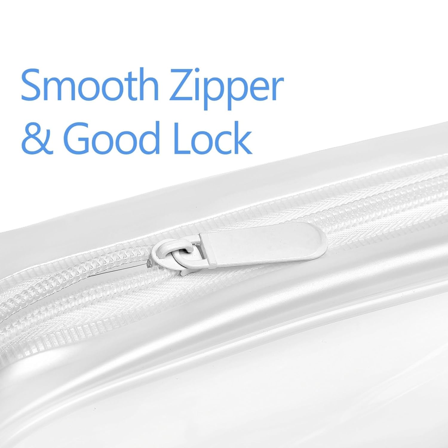 - High-Quality, Durable: The clear makeup bags keep the shape with reinforced boning. Smooth metal zipper for longevity, ensuring a secure seal that complies with TSA regulations for sealed bags. Wide opening for easy access. A net weight of only 0.7 lbs per bag, light and feelless
