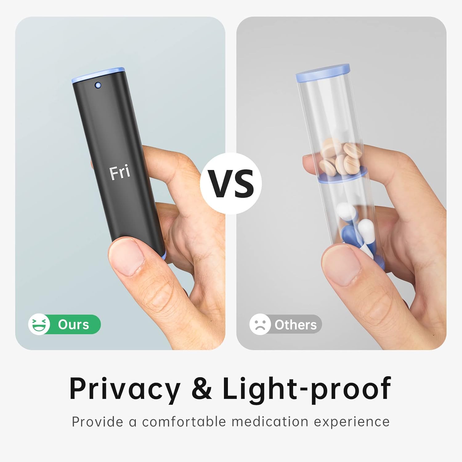 - Easy to Use & Clean: The 2 compact silicone caps on each small pill organizer providing a safe & airtight storage environment for vitamins, fish oils. Elders or people who have arthritis just need gently push to open and press to close. With this travel pill organizer, you will never forget your daily medication. The weekly pill box is made of Food-grade ABS, It is easier for daily clean than other silicone day and night pill organizers