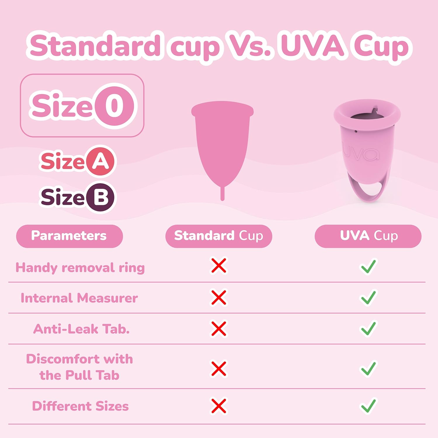 - Make the Eco-Friendly Switch with UVA: Choosing the UVA period cups means reducing your environmental footprint. With reusable silicone and a spill-proof cup, you're contributing to a cleaner planet, all while enjoying comfort and convenience.