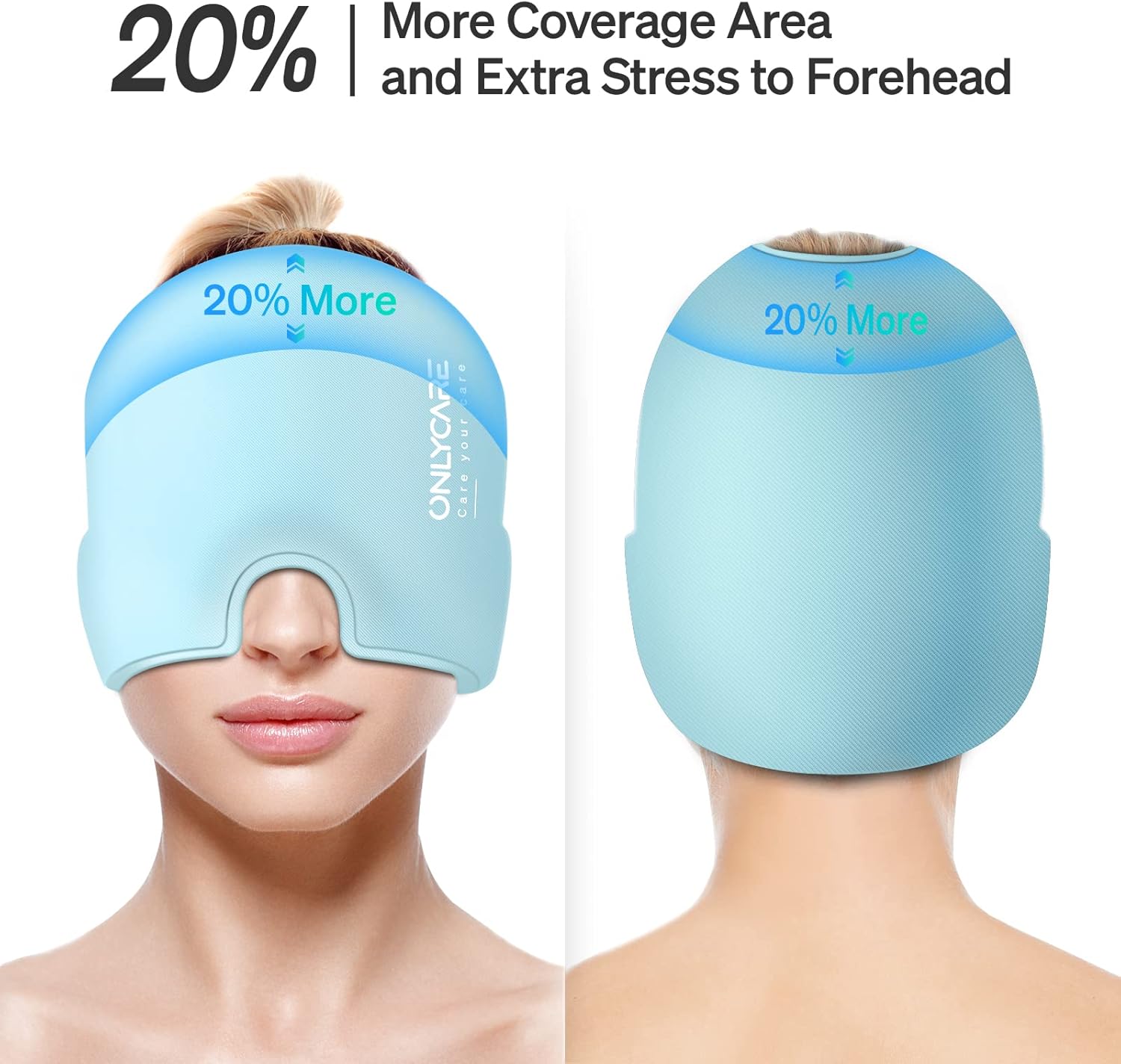 ONLYCARE Migraine Relief Cap, Upgraded Odorless Migraine Ice Head Wrap, Headache Relief Hat for Migraine, Blue
