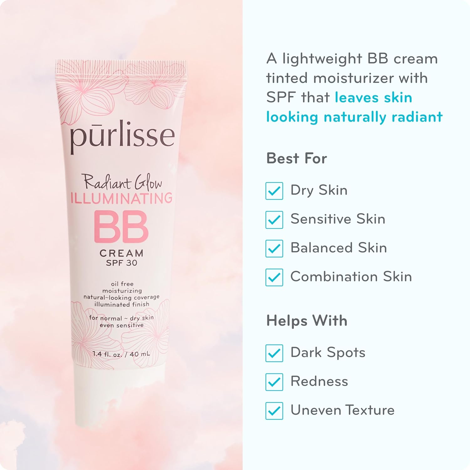 pūrlisse Radiant Glow Illuminating BB Cream with SPF 30 - Glow BB Cream Enriched with Goji & Hawthorn Berry for Dewy Skin - Helps to Improve Skin Texture & Radiance - Deep (1.4 oz)