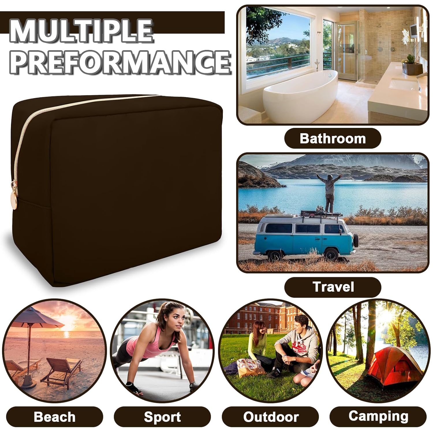 Large Makeup Bag Pouch,Nylon Women Travel Toiletry Storage Bag Preppy Cosmetic Bag for Girls,Big Makeup Organizer Bag Cute Zipper Pouch Skincare Bag for Sport Work Gift(Large-Chocolate)
