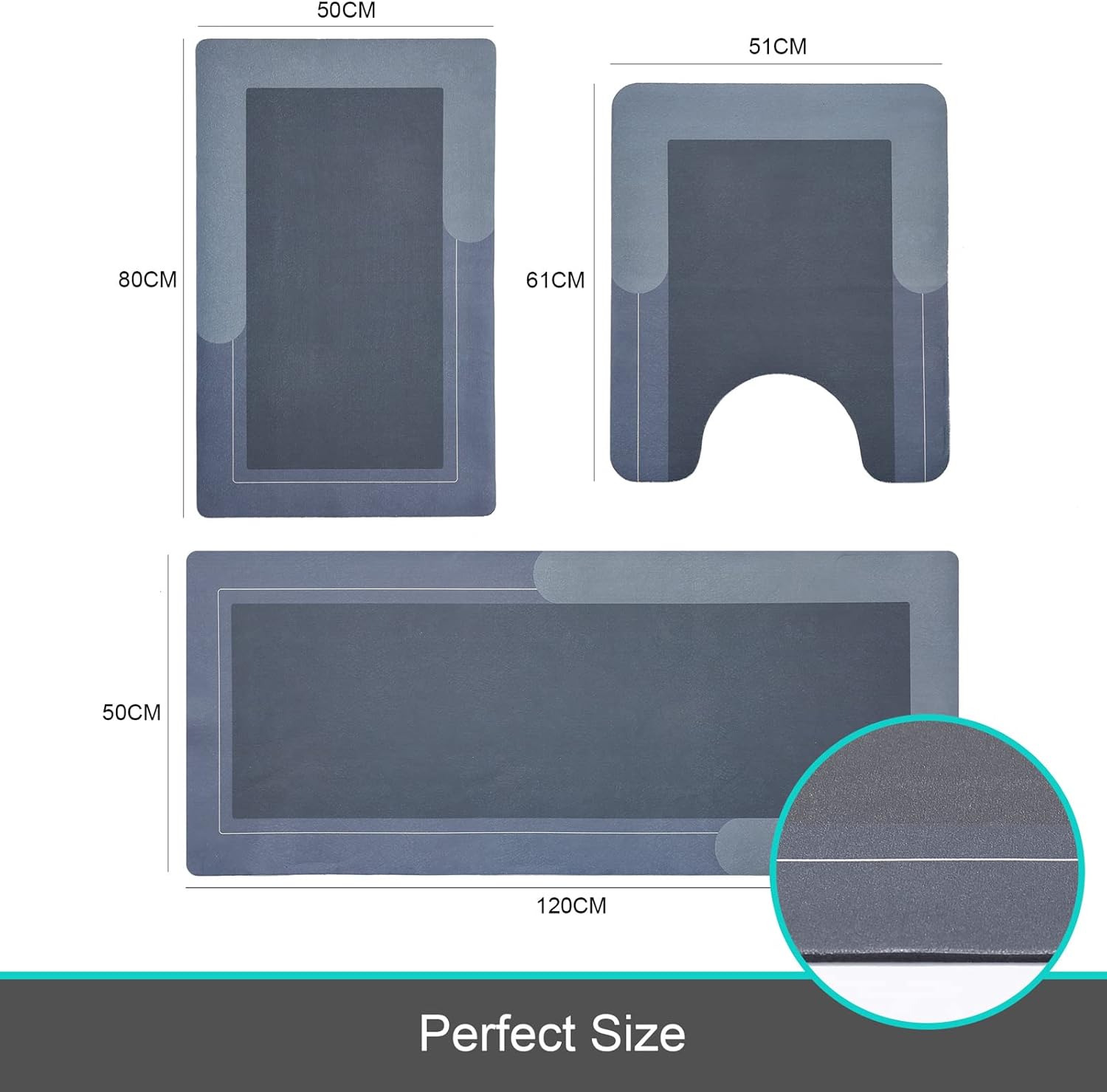 - With bath shower mats ( 20"x32" + 20"x47" ) and a 20"x24" U-shaped contour design, our bathroom rug set is perfect for a variety of spaces, including bedrooms, bathrooms, living rooms, entryways, bathtub sides, front of sinks, and even pet rugs.