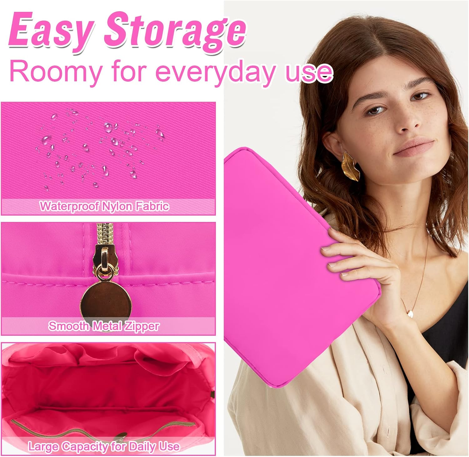 - ❤【DIY Your Bag & Patches Friendly】Large makeup bag material allows you to easily attach your favorite patches and fits all travel toiletries. You can put any chenille letters or patterns you want on it, "STUFF" SNACK "BEACH" and so on to design your unique travel makeup bag. Make your preppy makeup bag very interesting and vivid!