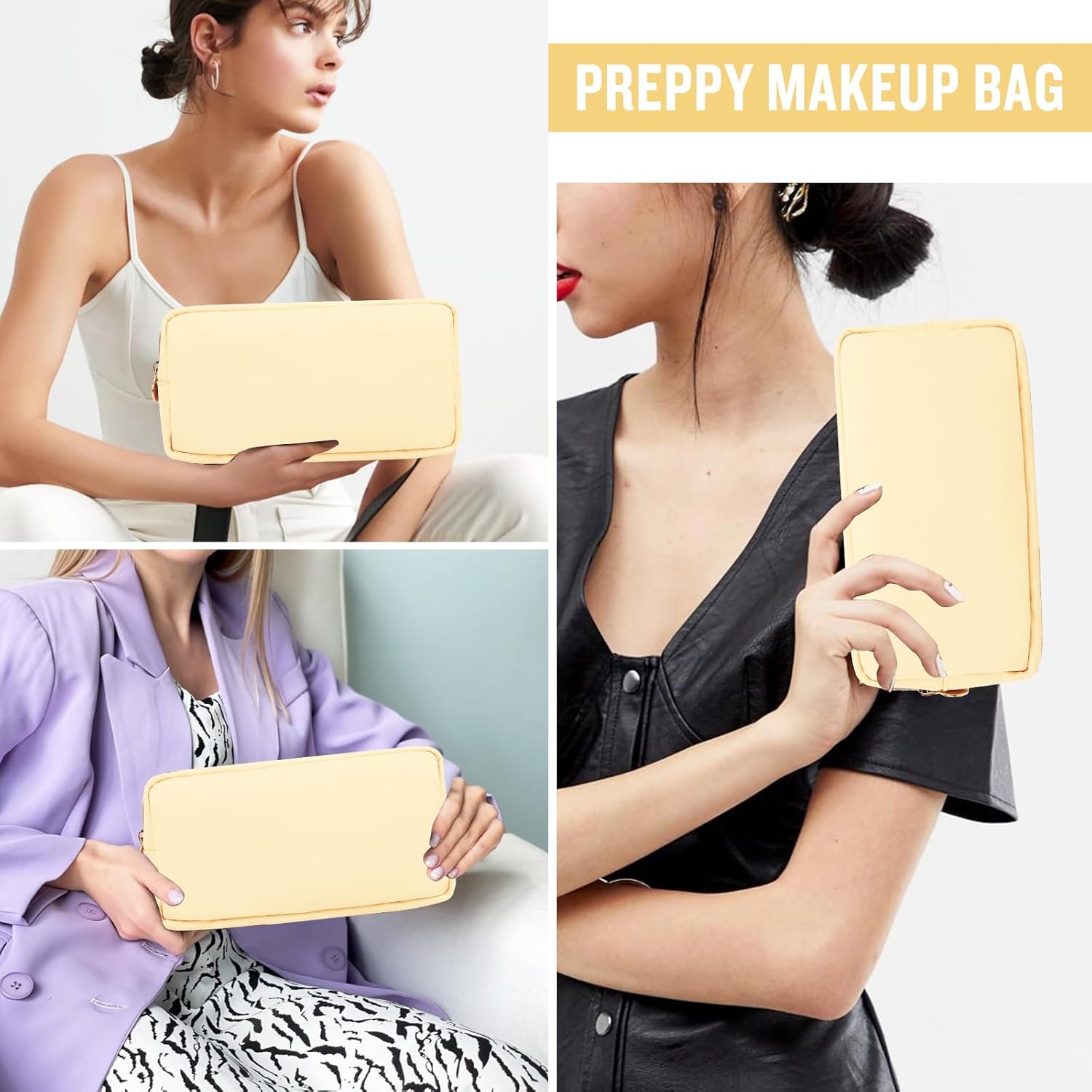 - ❤【DIY Your Bag & Patches Friendly】Small compact makeup bag material allows you to easily attach your favorite patches and fits all travel toiletries. You can put any chenille letters or patterns you want on it, "STUFF" SNACK "BEACH" and so on to design your unique travel makeup bag. Make your preppy makeup bag very interesting and vivid!