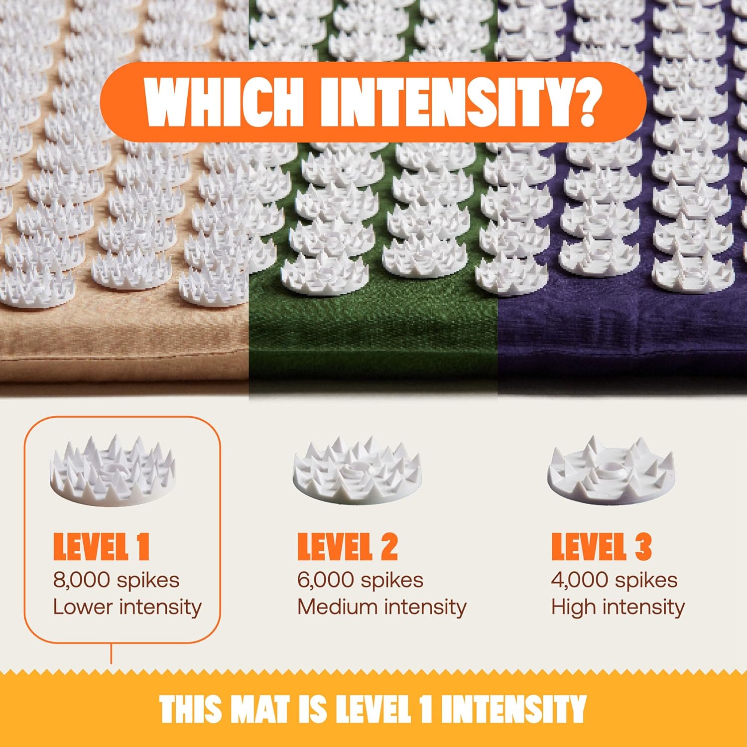 - CHOOSE YOUR LEVEL OF PRESSURE: Accupressure is personal, and ShaktiMat spikes are the sharpest around; Level 1 is perfect for anyone new to acupressure; more spikes = less initial discomfort.