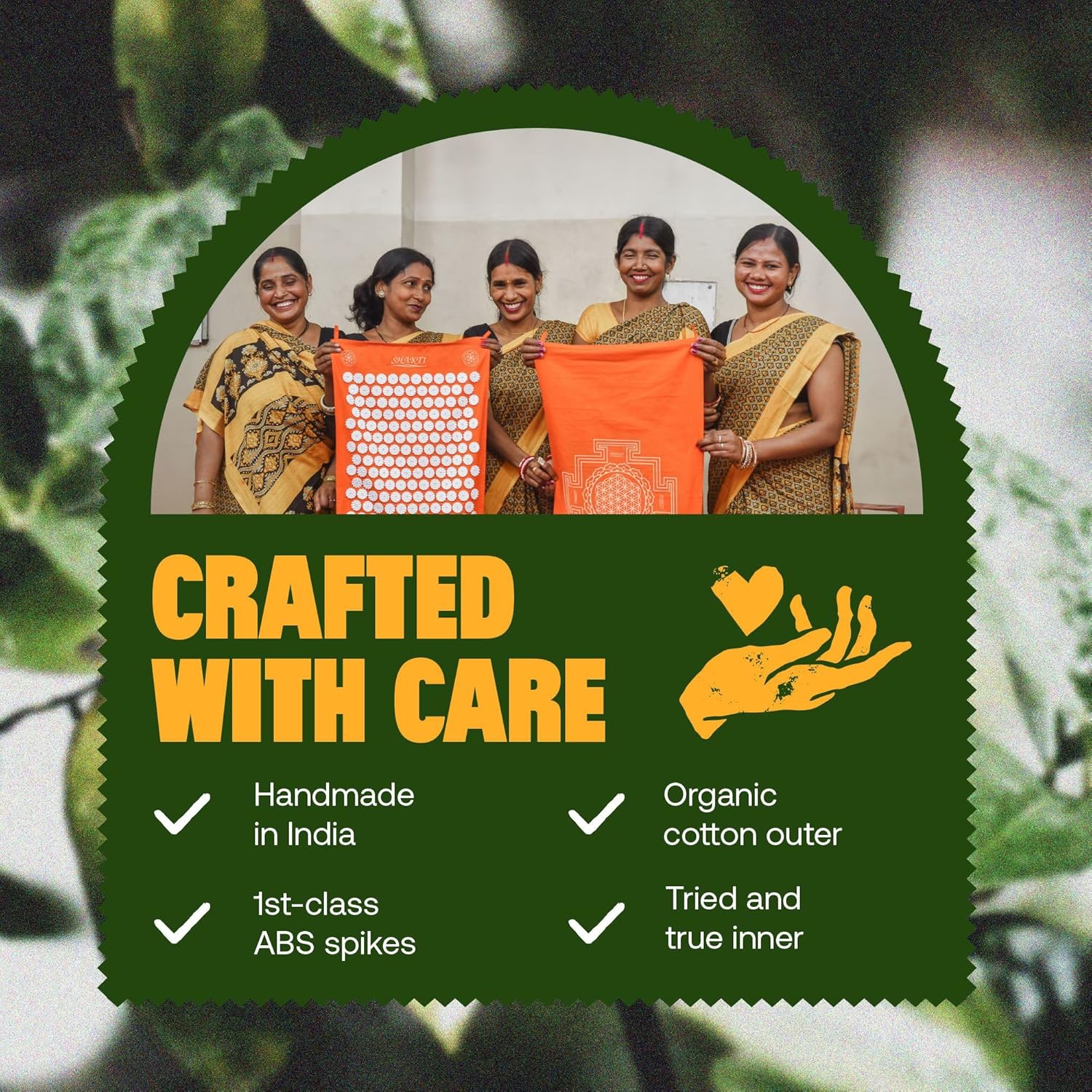- QUALITY MATERIALS: Ethically handmade with certified organic cotton, 1st-class ABS spikes and organic Blissfoam for a sinking sensation that feels better than a back massage.