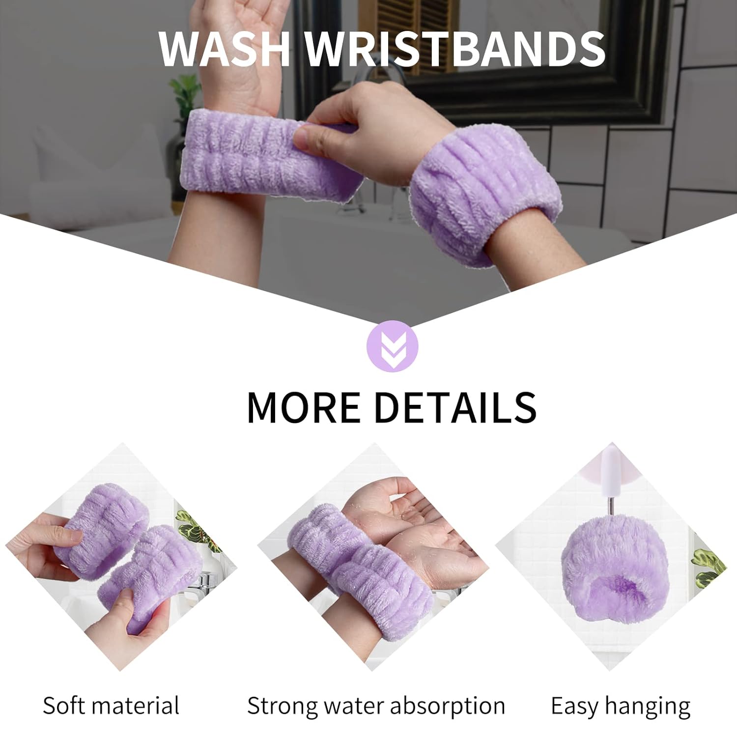 WSYUB Spa headband, Wristbands, Headband for Washing Face, 2pcs Wristlets for Sleeves Dry, Make up Headband,Purple