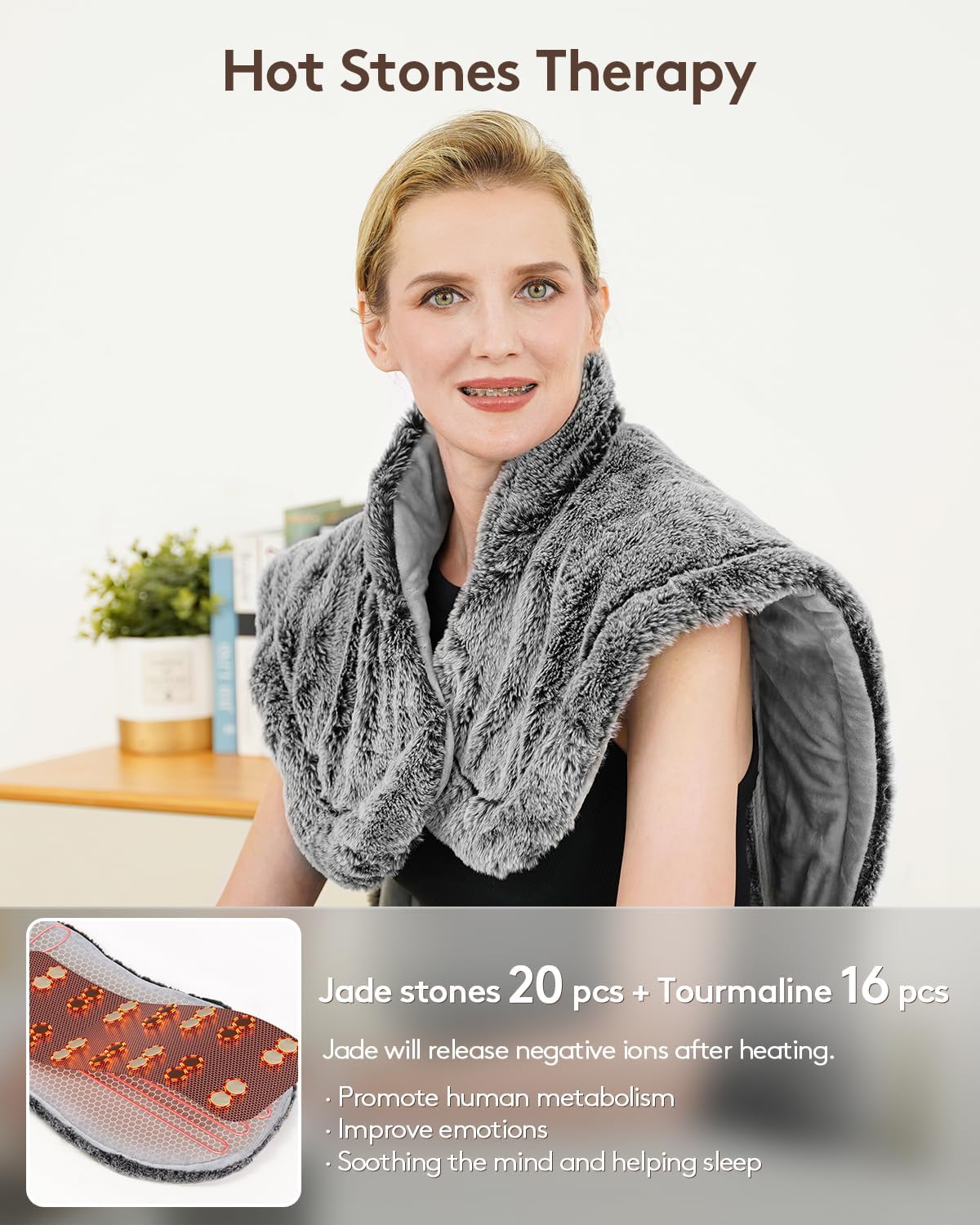 - 【Hot Jade & Lodestone Therapy】The heating pad is built with 20 topaz stones and 16 lodestone. The negative ions released by the heated jade can boost metabolism, improve mood, promote relaxation, and aid sleep. Its excellent heat conductivity and heat storage capabilities provide stable and long-lasting warmth. The magnetic field generated by the lodestone stimulates local microcurrents, promoting blood circulation and relieving inflammation and chronic pain.