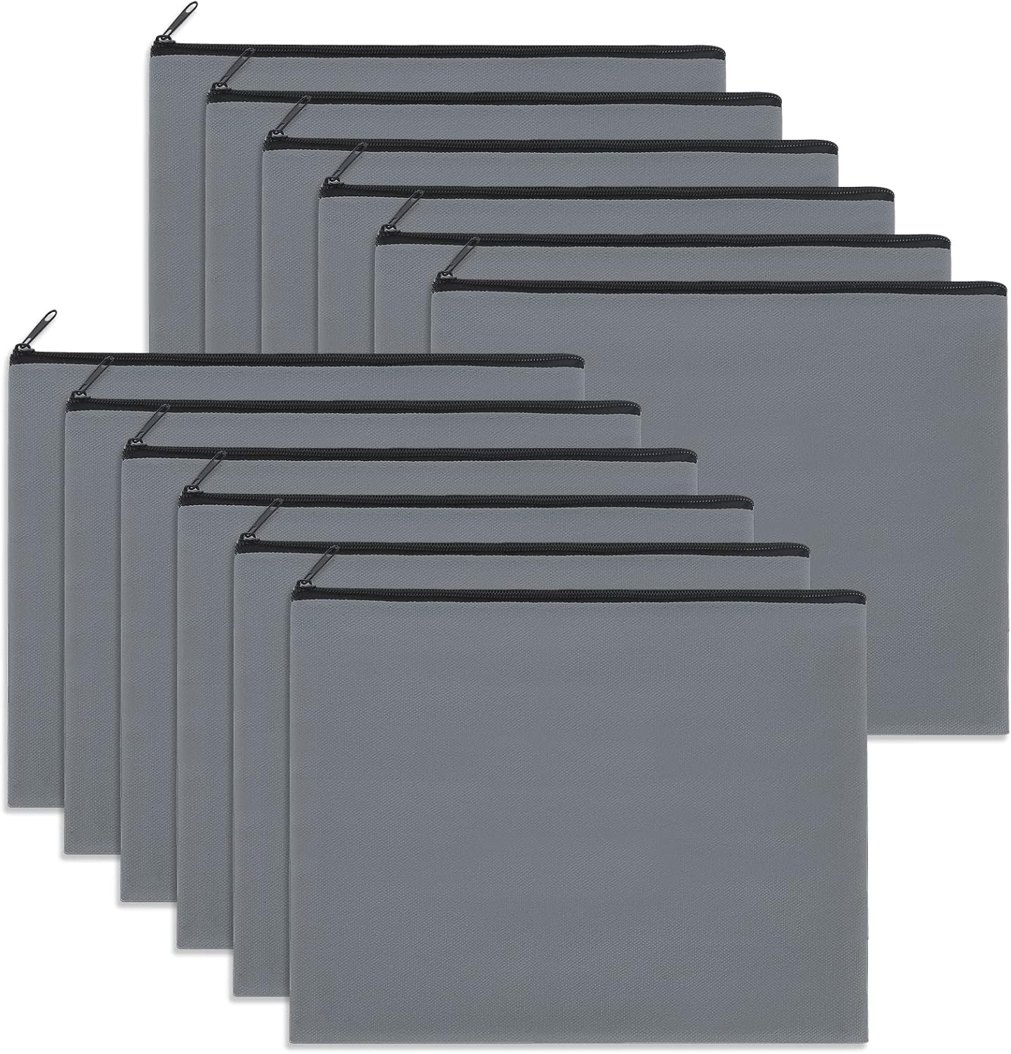 12 Pieces Cotton Canvas Makeup Bag, Multipurpose Cosmetic Bag with Zipper Travel Toiletry Pouch, Blank DIY Craft Bag (Grey, L)