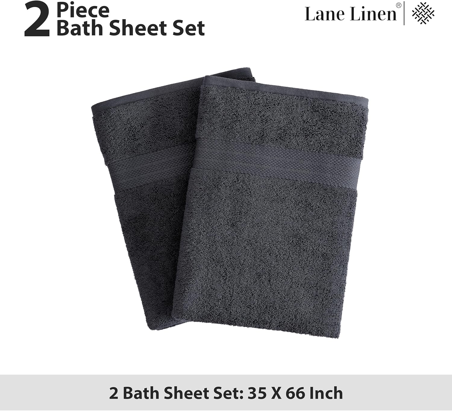 LANE LINEN 100% Cotton Bath Sheets Set of 2 (35"x66") - Ring Spun Cotton Extra Large Bath Towels Sets - Quick Dry, Soft & Absorbent Oversized Towel Sets- Pre Shrunk, Fade Resistant - Black Towels