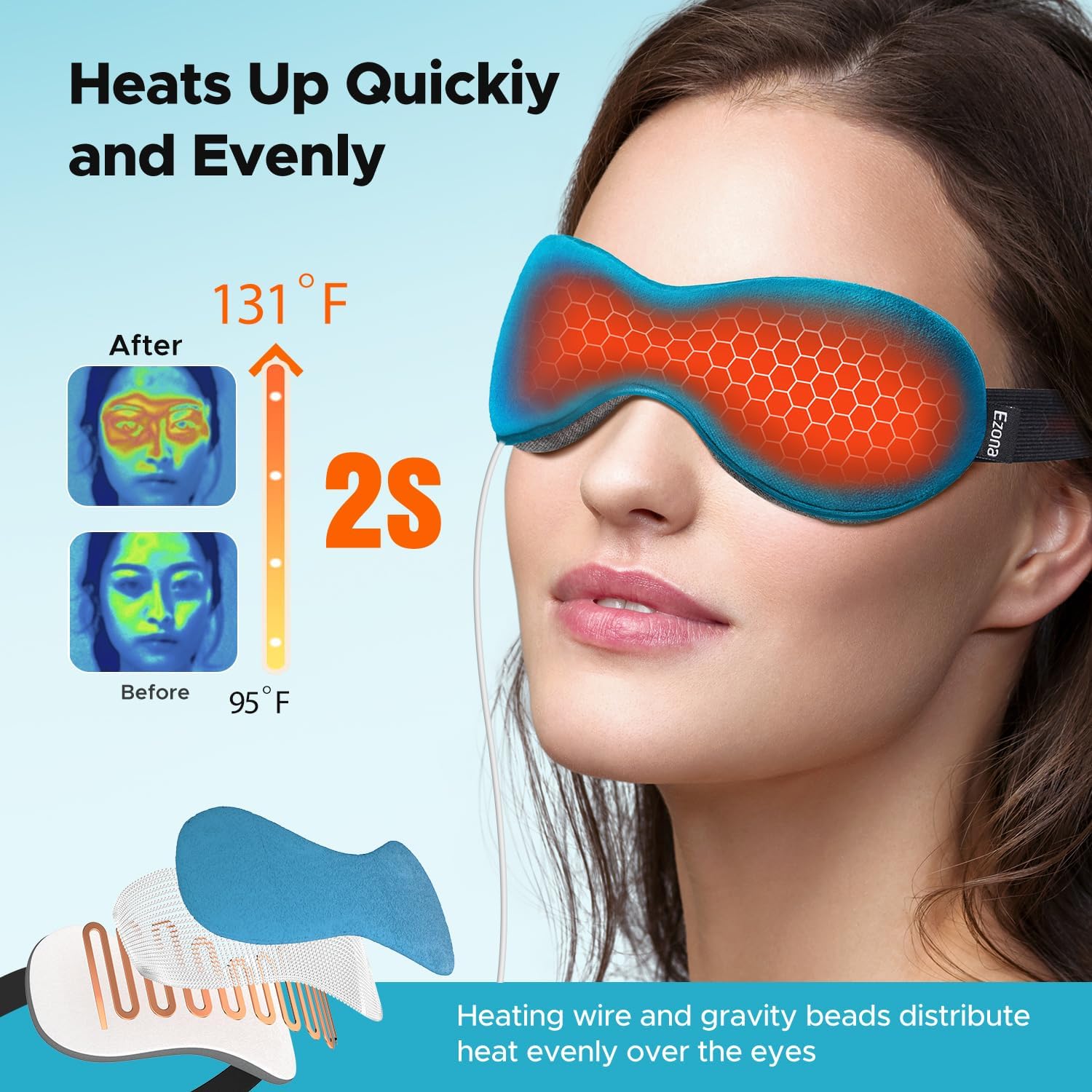 Ezona Heated Eye Mask, Warm Eye Compress Mask for Dry Eyes, USB Electric Eye Heating Pad with Temperature & Timer Control, Dry Eyes, Blepharitis, Sinus Migraine (Blue)