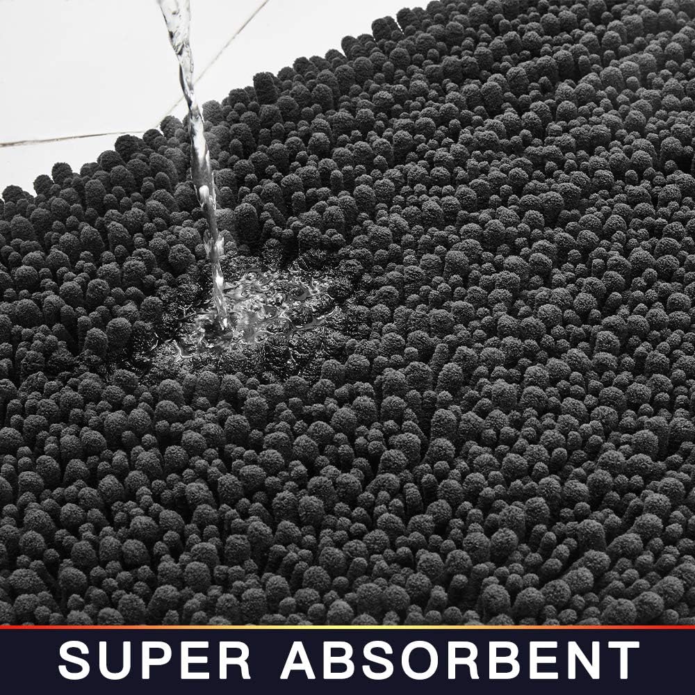 Walensee Large Bathroom Rug Non Slip Bath Mat (24x60 Inch Dark Gery) Water Absorbent Super Soft Shaggy Chenille Machine Washable Dry Extra Thick Perfect Absorbant Best Plush Carpet for Shower Floor