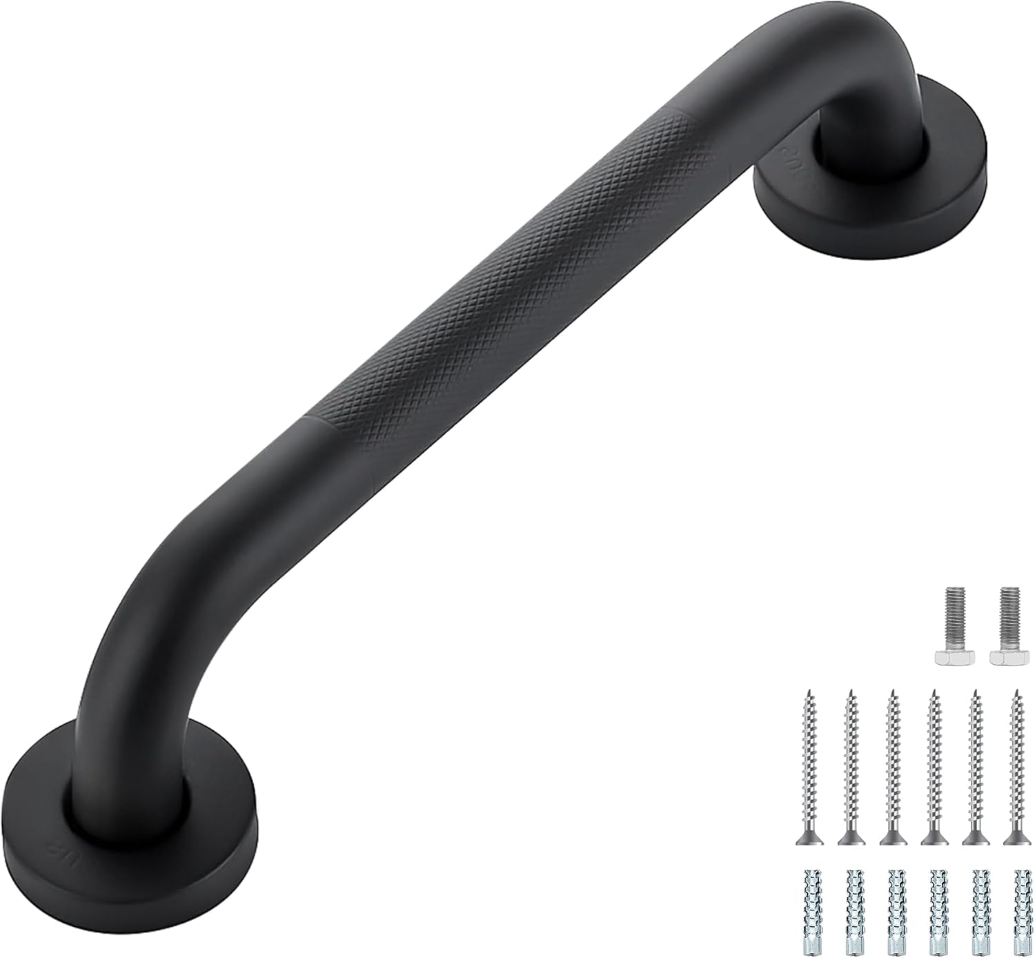 Grab Bars for Shower, 1 Pack 12-Inch Anti Slip Shower Handles for Elderly, Safety Shower Grab Bar, Stainless Steel Handicap Grab Bars for Bathroom (Black 1" Diameter)